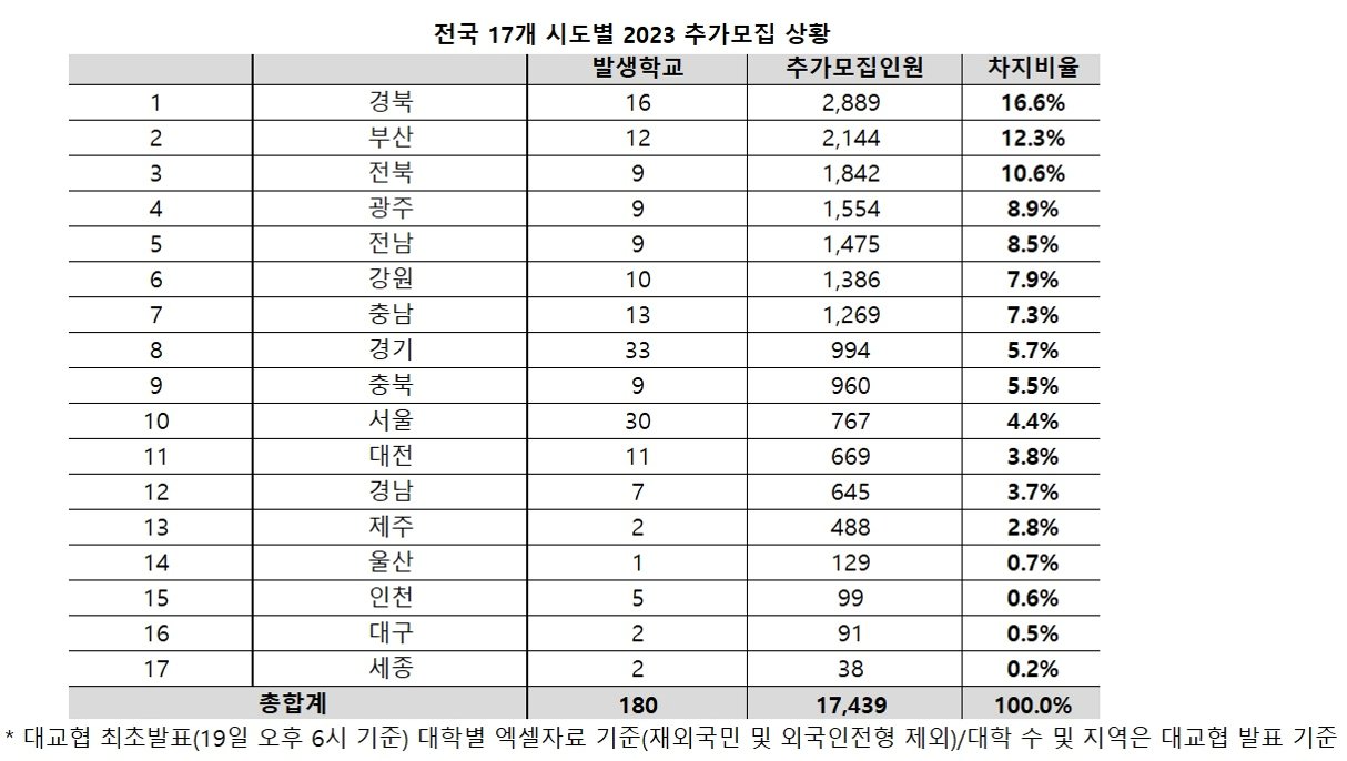 지방대 추가모집 인원, 7년 만에 최저치 기록