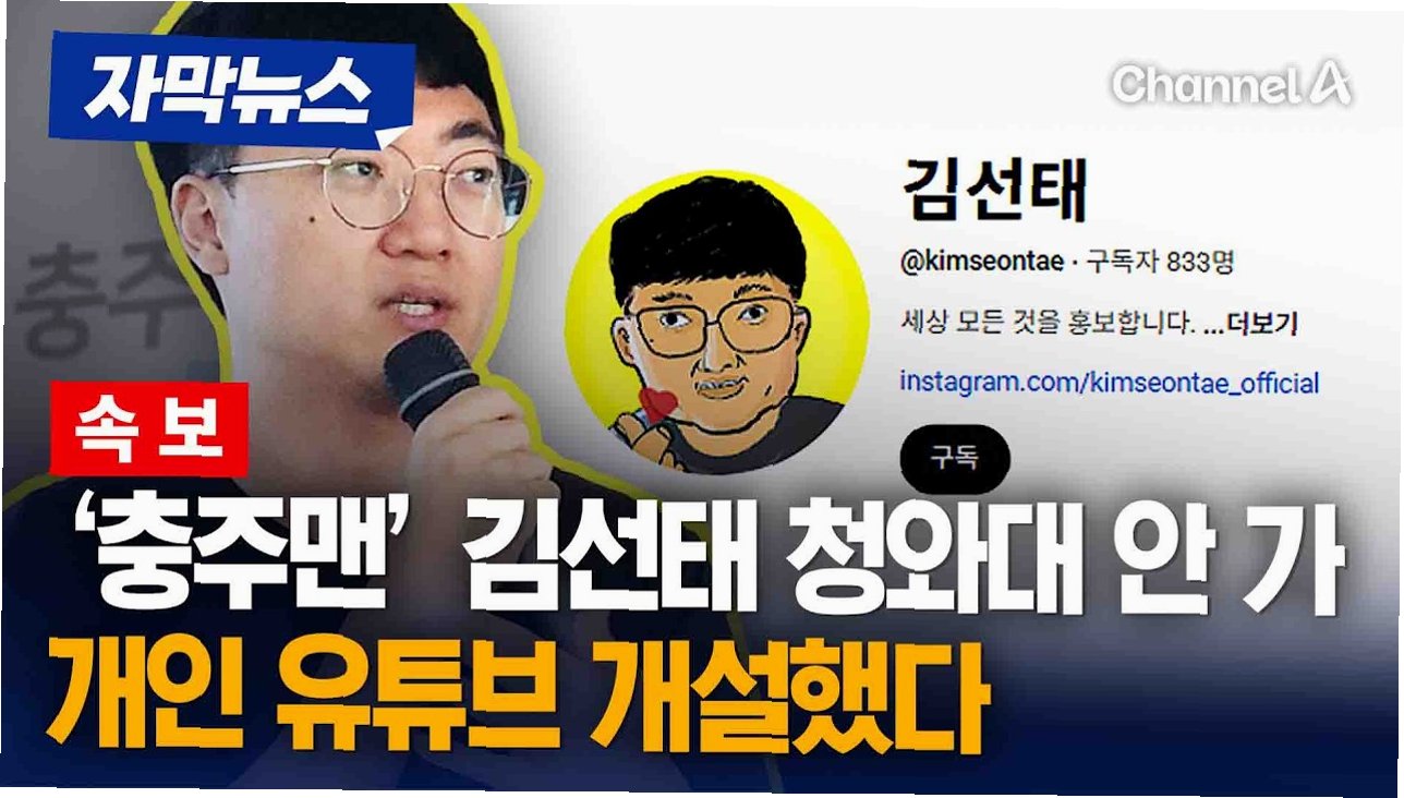 인기 유튜버 '충주맨' 김선태 씨가 개인 유튜브 채널 '김선태'를 개설하며 새로운 도전을 시작했습니다. 충주시 홍보를 통해 얻은 경험과 센스를 바탕으로 '세상 모든 것을 홍보한다'는 포부 아래 펼쳐질 그의 콘텐츠에 많은 기대가 모아지고 있습니다.