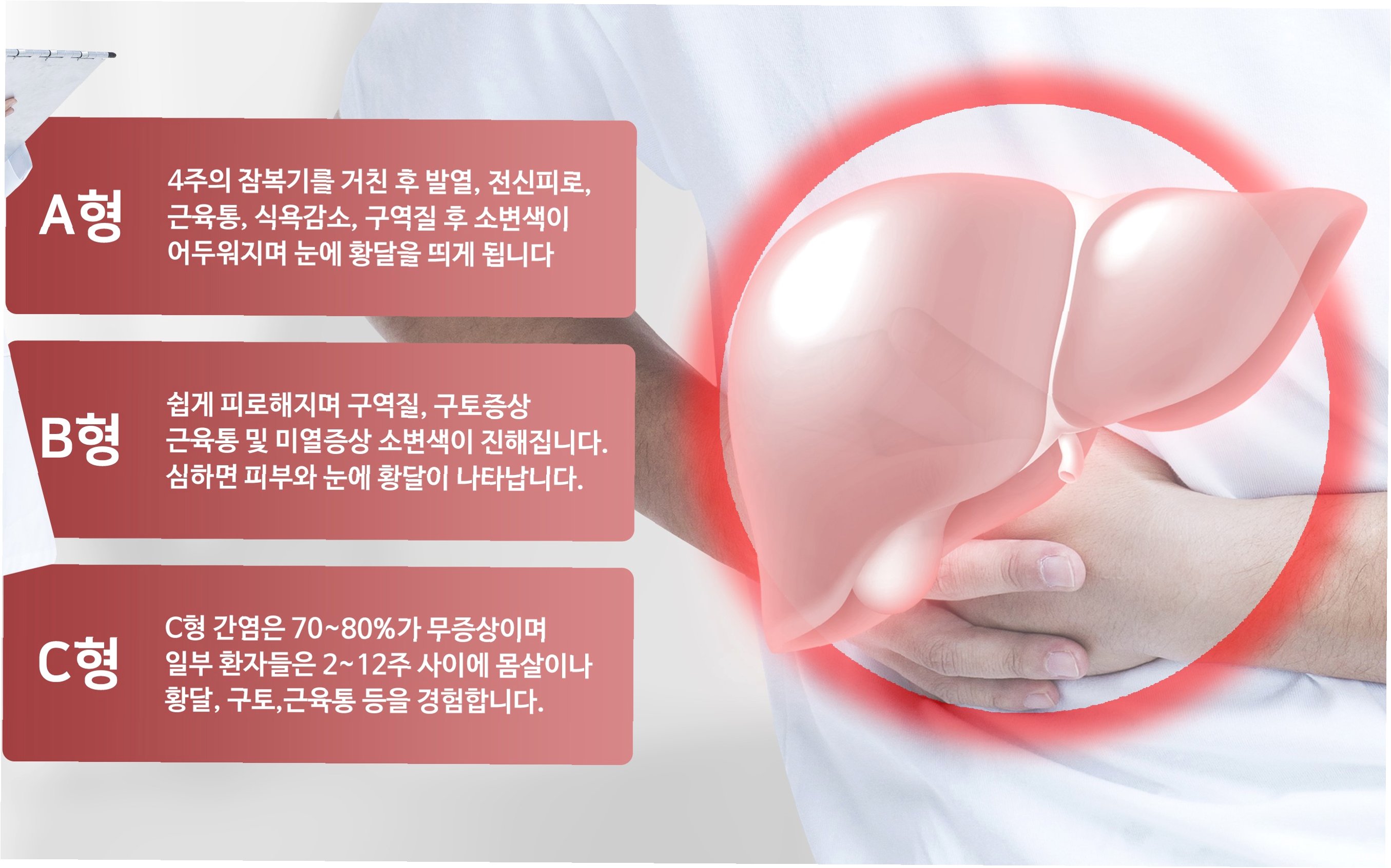 3. 간경변: B형 또는 C형 간염 등 만성적인 간 손상으로 인해 간 조직이 굳어지는 현상입니다.
