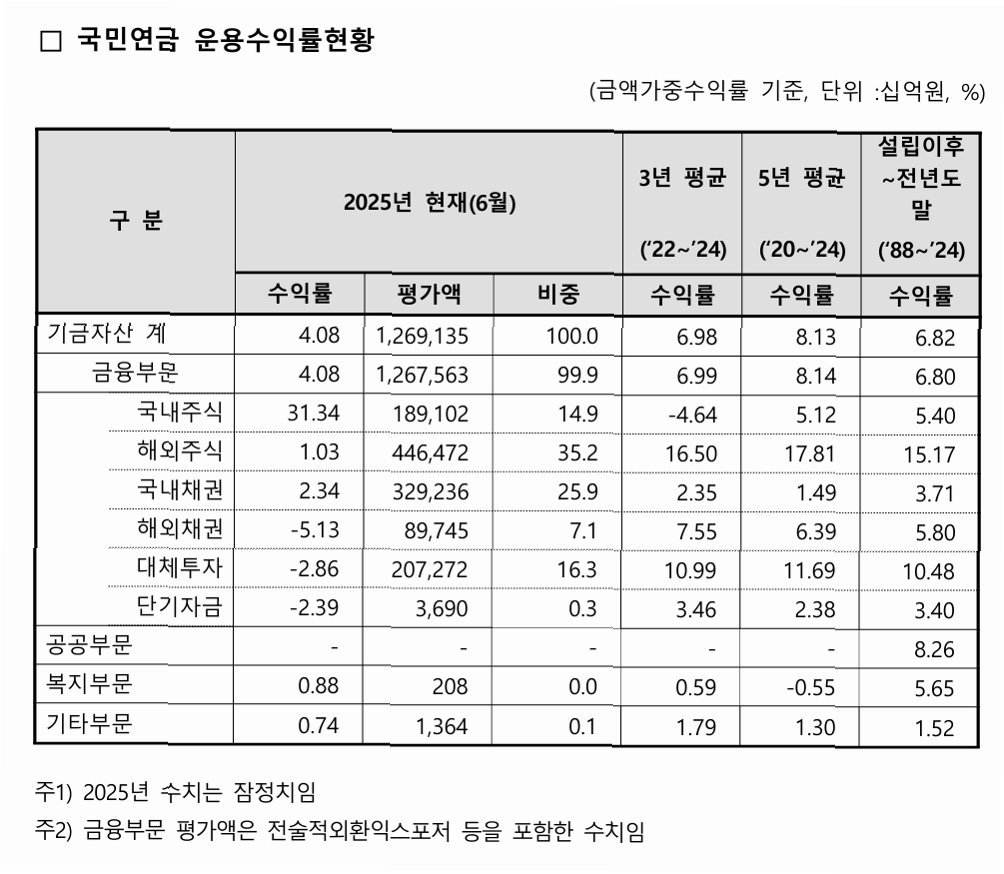 국민연금, 국내 주식 시장에서 압도적 수익률 달성