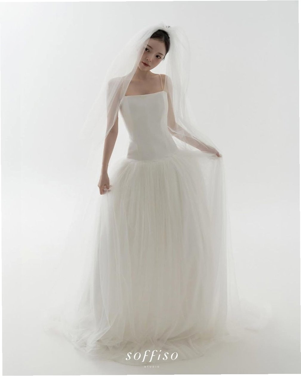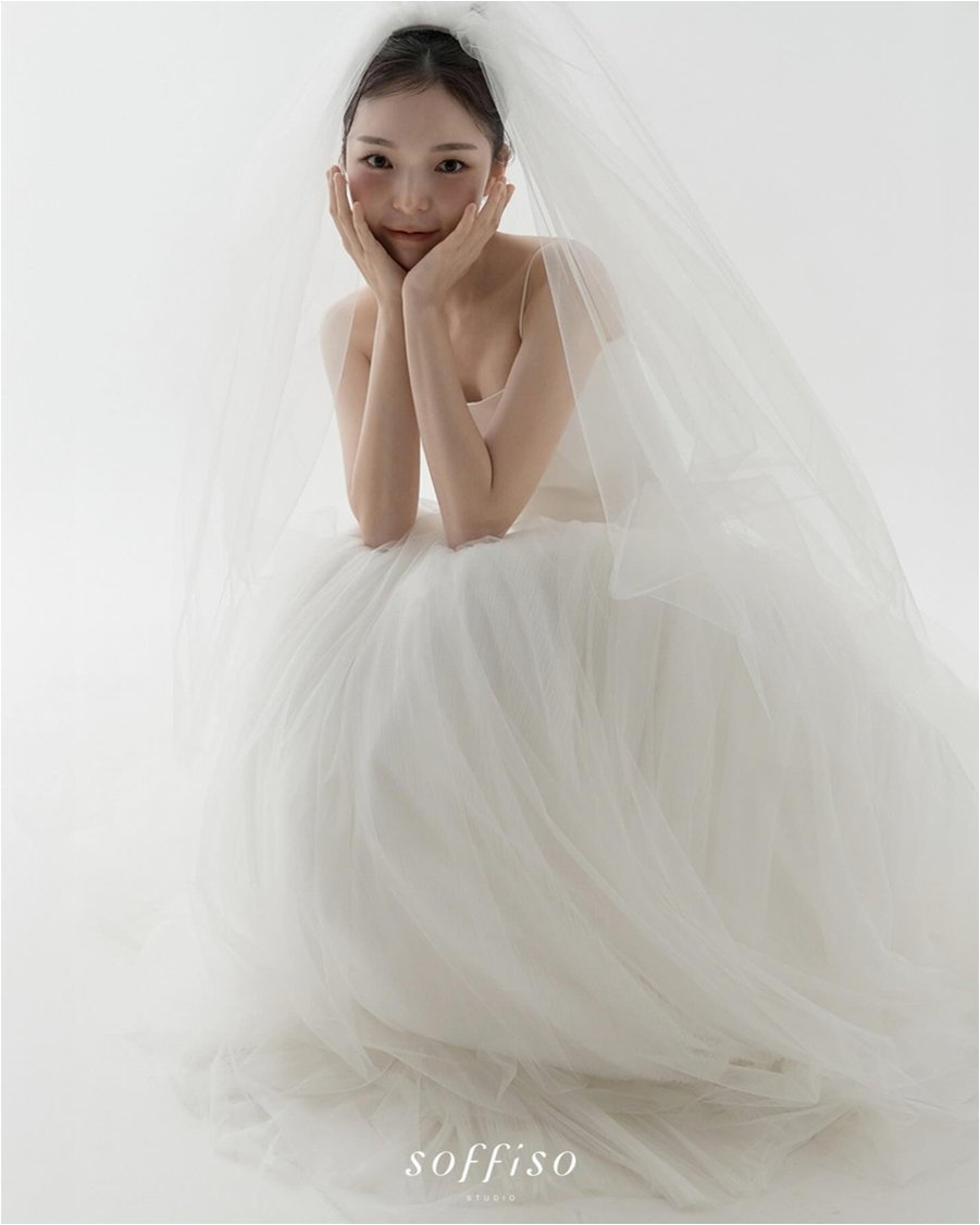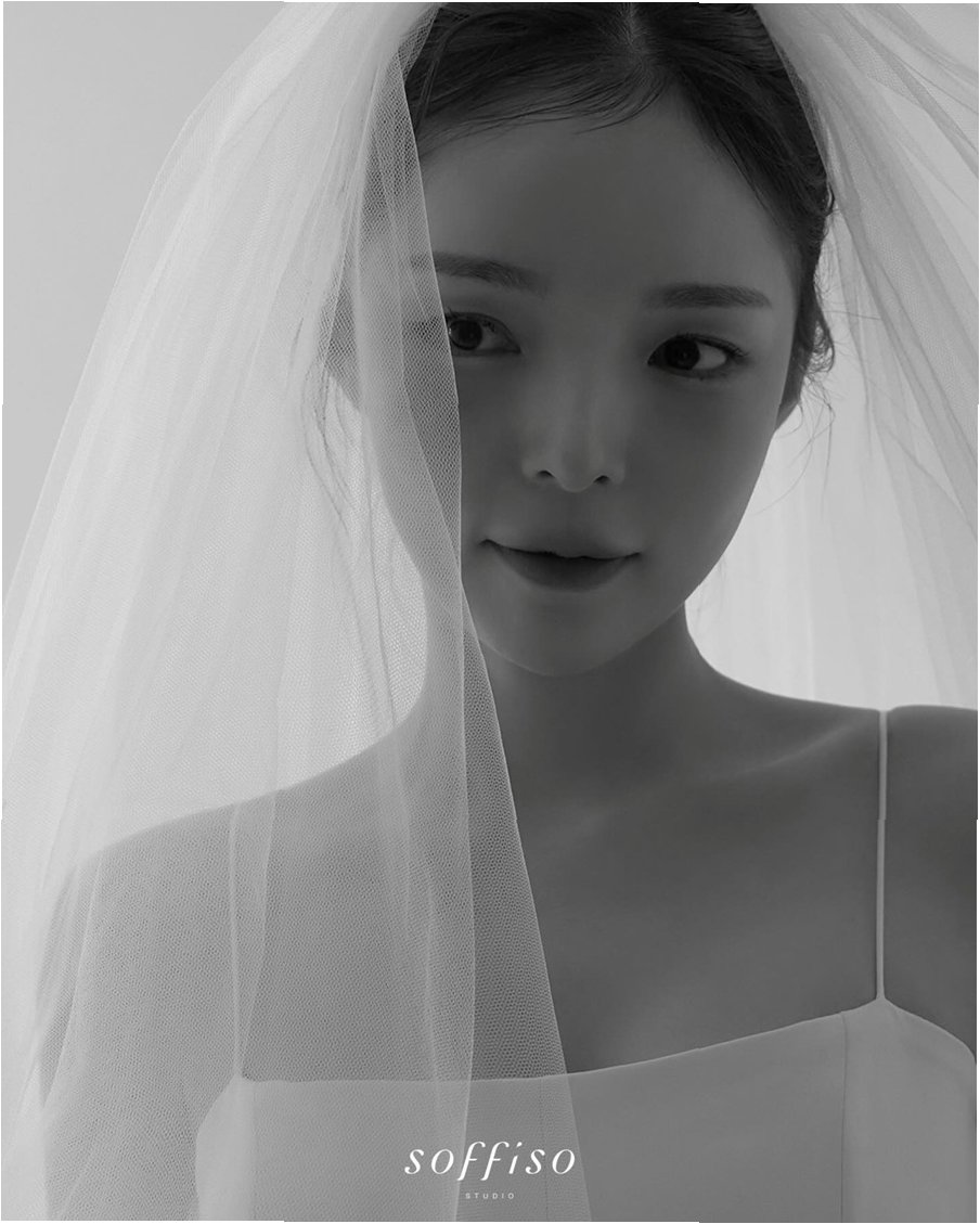 슬릭번 헤어스타일과 청순한 면사포, 우아함의 결정체
