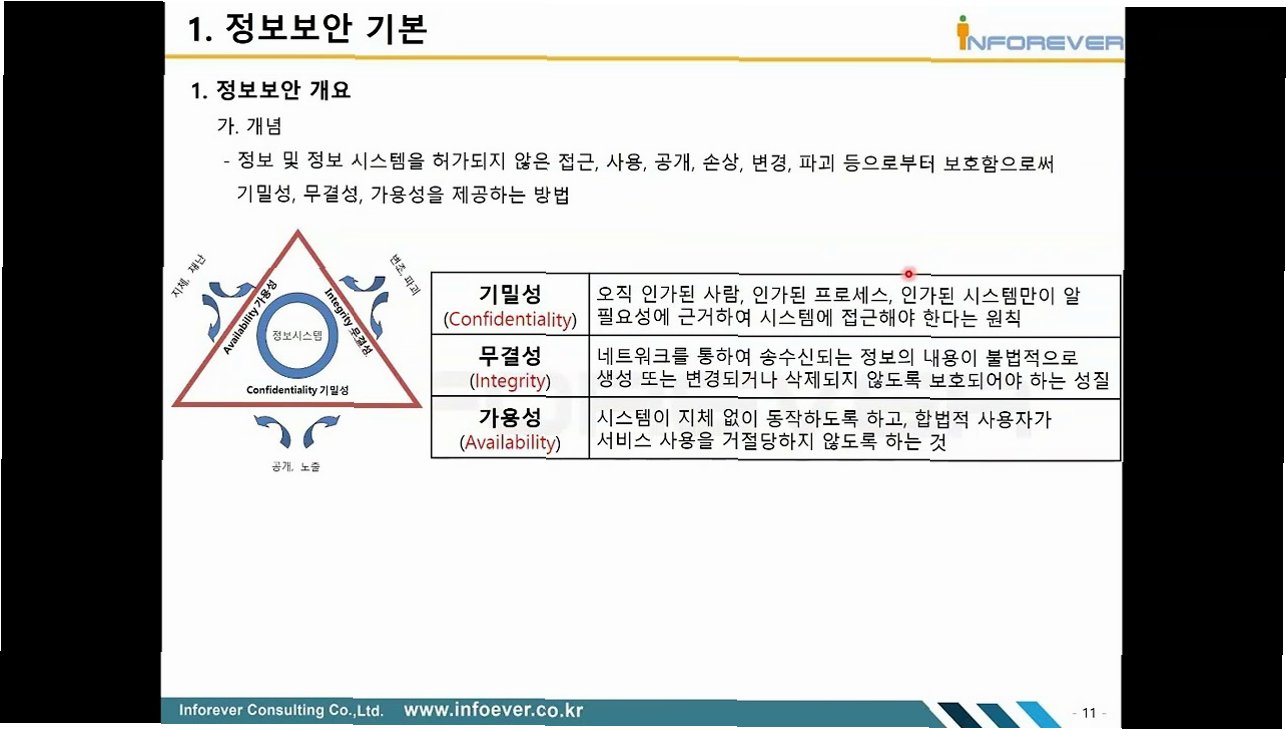정보 보안은 정보의 기밀성(Confidentiality), 무결성(Integrity), 가용성(Availability)을 보장하는 일련의 활동을 의미합니다.