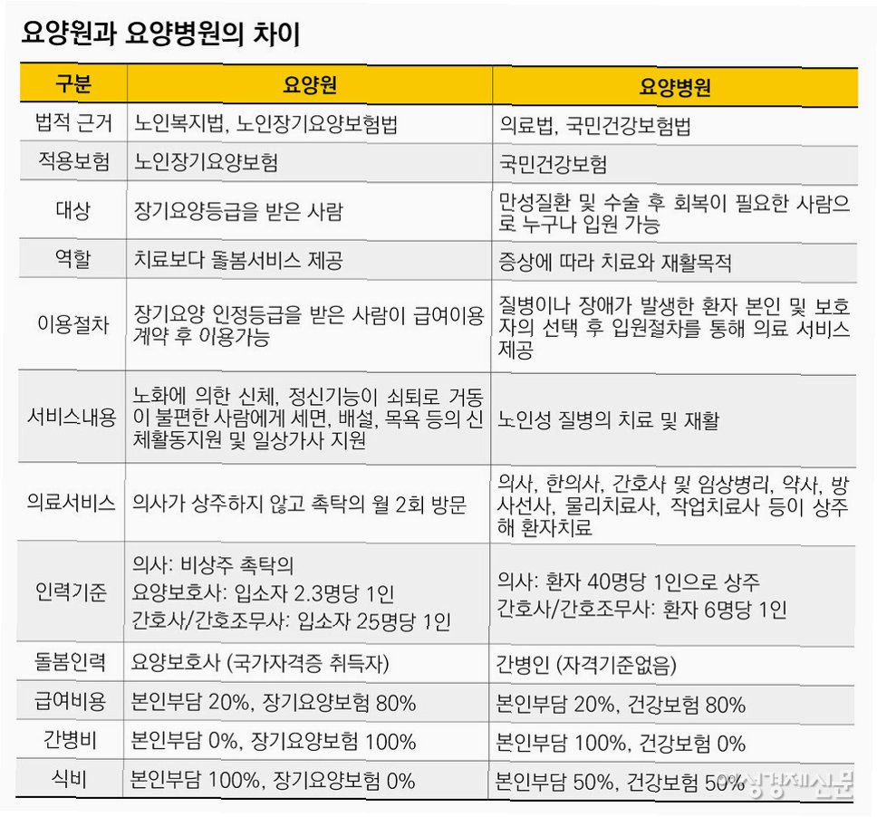 Q.요양병원과 요양원의 차이점은 무엇인가요?