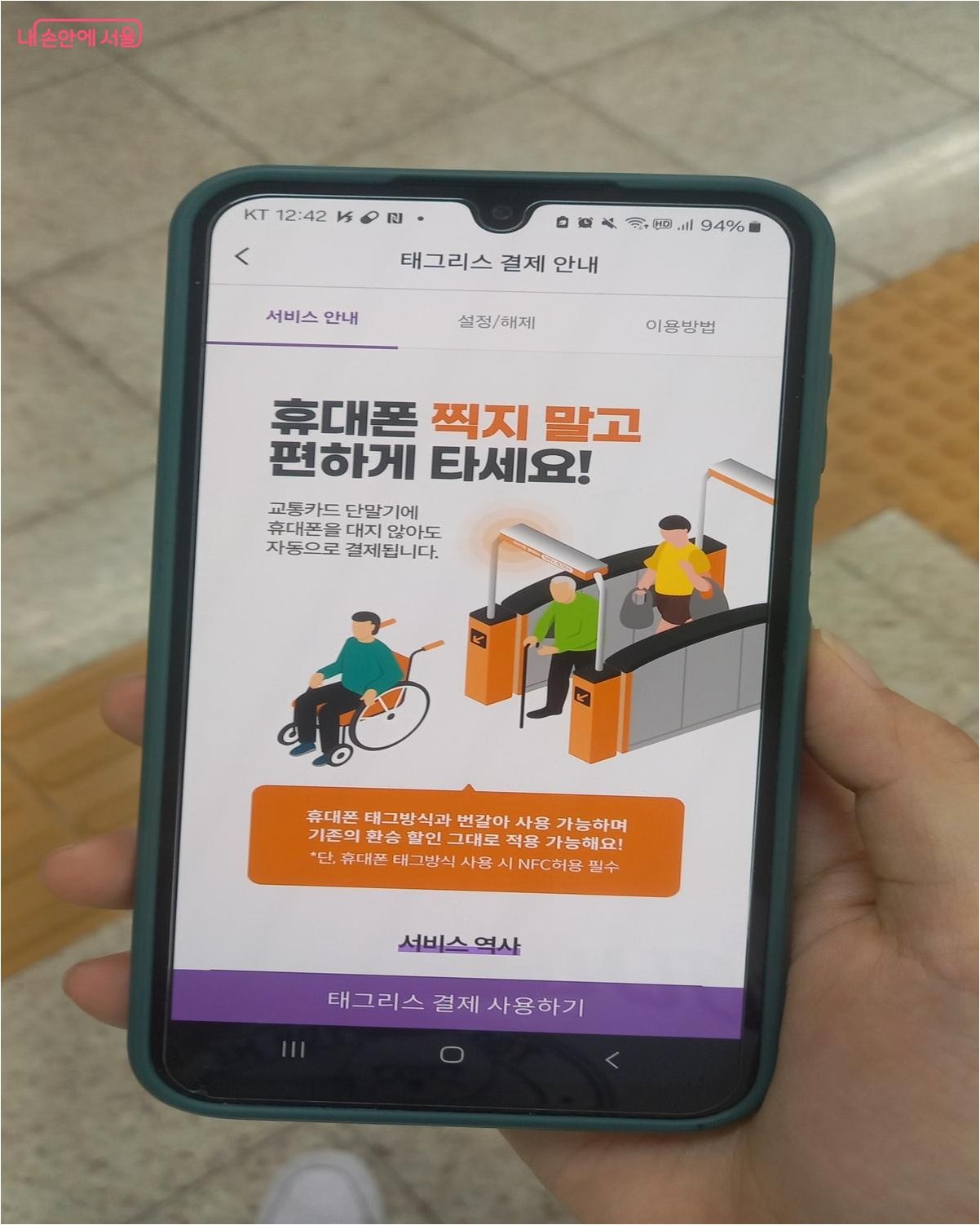 * NFC 기능 활성화: 지하철/버스 탑승 전, 스마트폰의 NFC 기능이 활성화되어 있는지 확인합니다.