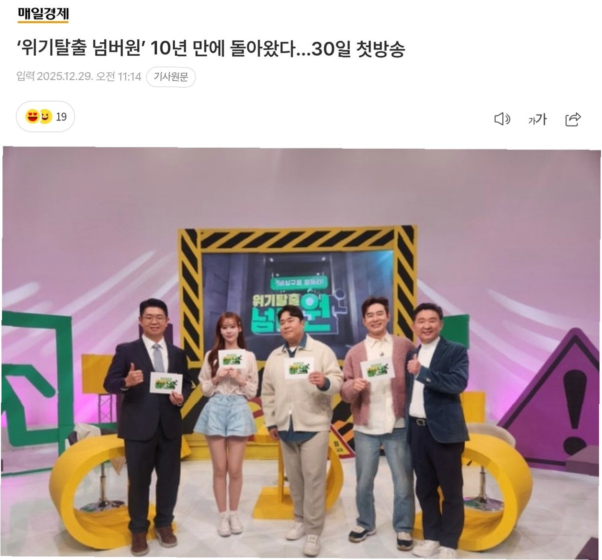 문세윤과 조충현 아나운서가 함께하는 '위기탈출 넘버원: 비상구를 열어라'는 급변하는 시대에 맞춰 안전 정보를 제공하고, 시청자들이 위기 상황에 대처할 수 있도록 돕는 프로그램입니다. 12월 30일, KBS Joy에서 만나보세요!