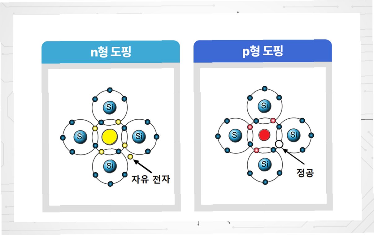 A.실리콘과 같은 반도체 재료에 불순물을 첨가하여 p형과 n형 반도체를 만들고, 이를 조합하여 트랜지스터와 집적 회로를 제작합니다.