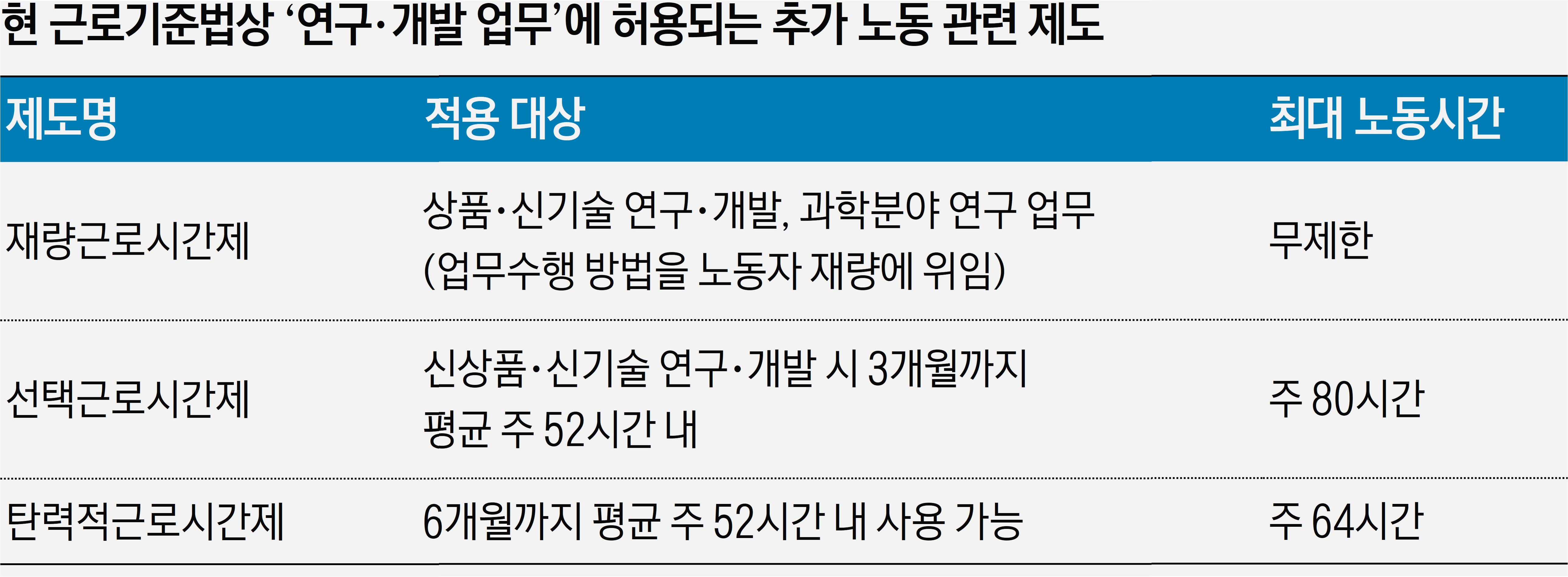 A.반도체 업계는 R&D 경쟁력 확보를 위해 유연한 근로 시간 보장을 원했으며, 이는 글로벌 경쟁에서 우위를 점하기 위한 필수 조건으로 여겨졌습니다.