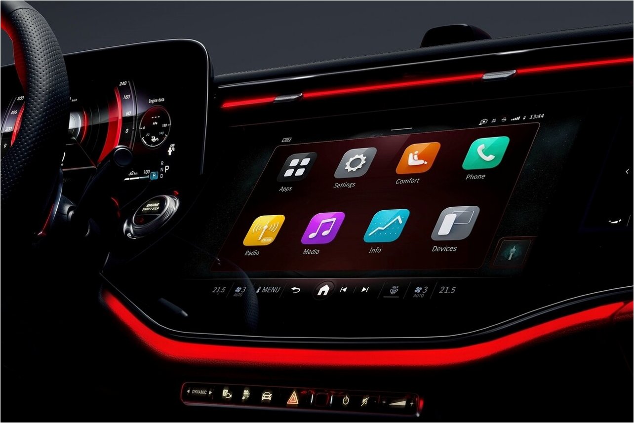 실내는 이전 세대보다 휠베이스가 20㎜ 길어져 넉넉한 공간감을 선사합니다. 2열 너비와 레그룸 또한 각각 25㎜, 17㎜ 확대되어 동승자에게 더욱 편안한 경험을 제공합니다. 14.4인치 중앙 디스플레이가 동승자석 디스플레이로 매끄럽게 이어지는 MBUX 슈퍼스크린은 시선을 사로잡으며, 검은색 원목 패턴으로 마감된 센터 콘솔은 고급스러움을 더합니다.