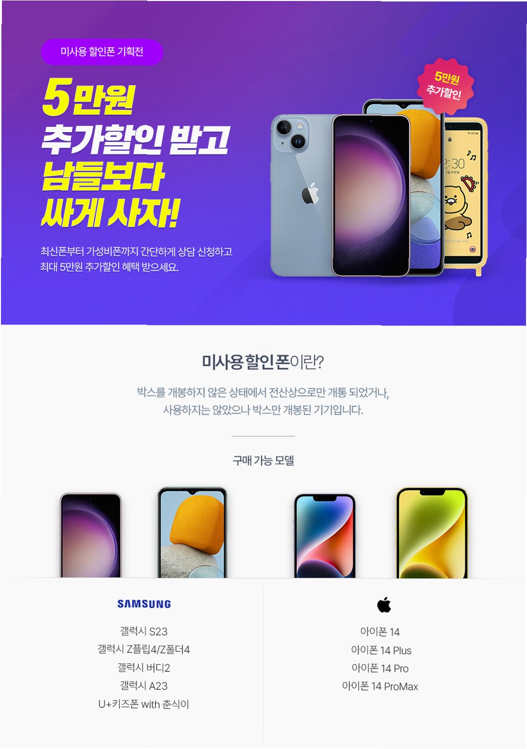 A.최신 스마트폰부터 구형 모델까지, 다양한 스마트폰 모델이 할인 대상이 됩니다. 특히, 출시 임박 모델, 구형 모델, 통신사 제휴 모델 등이 주요 할인 대상입니다.