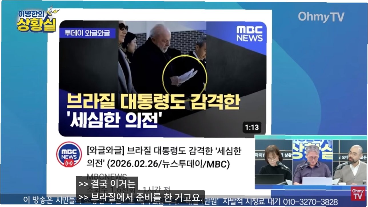 브라질 룰라 대통령의 국빈 방한 당시 화제가 되었던 '새끼손가락' 없는 장갑은 한국 청와대가 아닌 브라질 의전팀이 직접 준비한 것으로 밝혀졌습니다. 룰라 대통령이 현충원 참배 중 장갑의 특징을 발견하고 놀라움과 감동을 표하는 모습이 영상에 담기면서, 한국 측의 세심한 의전으로 오해받았으나 이는 브라질 수행팀의 준비였습니다. 외교부 관계자는 브라질 수행팀이 현지에서 준비해 온 것이라고 명확히 설명했습니다.