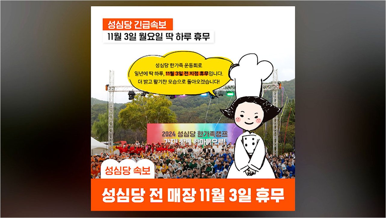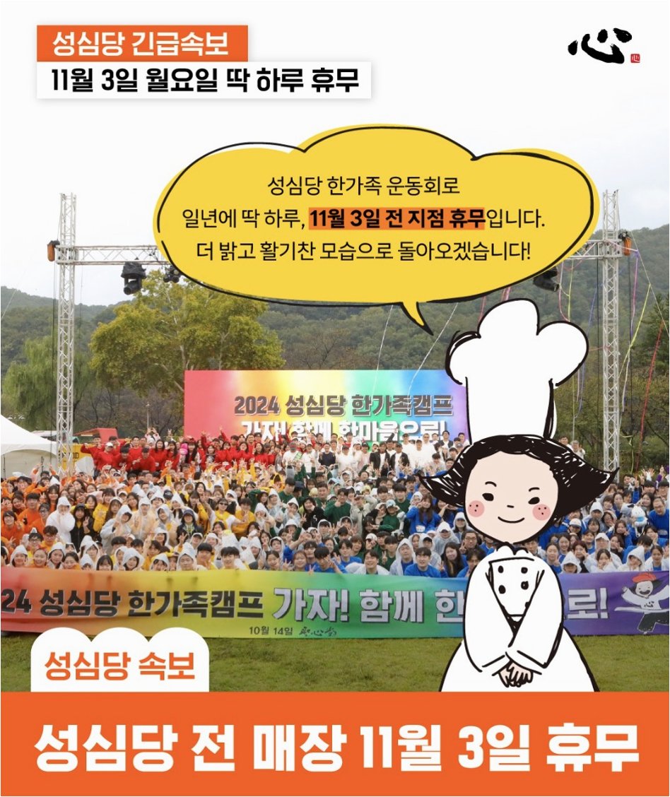 성심당, 직원 운동회로 인한 하루 휴무 공지