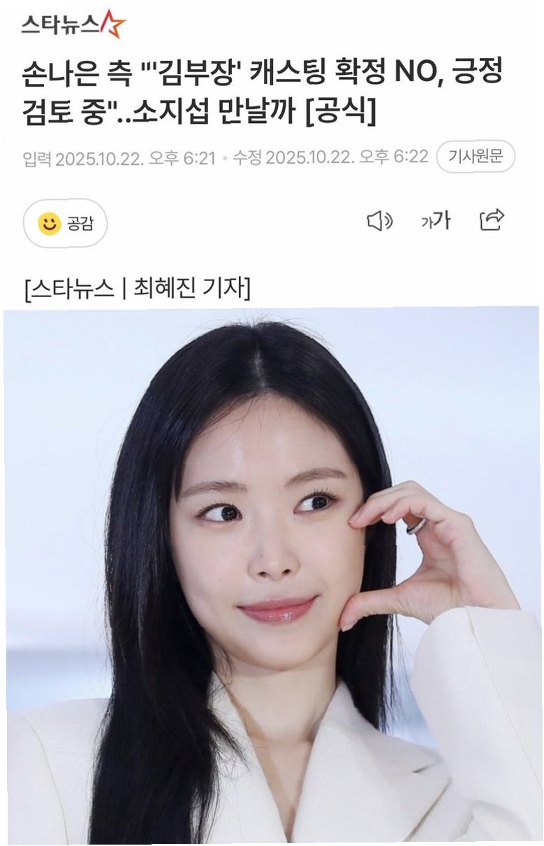 손나은이 드라마 '김부장'에 캐스팅되어 소지섭과 호흡을 맞춘다는 소식은 많은 팬들에게 기쁨을 안겨주었습니다. '김부장'에서 그녀는 비밀을 간직한 상아 역을 맡아 극의 긴장감을 높이는 역할을 할 예정입니다. 그동안 다양한 작품에서 폭넓은 연기 스펙트럼을 보여준 손나은이 '김부장'에서 어떤 새로운 모습을 보여줄지 기대가 큽니다. '김부장'은 2026년 SBS에서 방영될 예정이며, 손나은을 비롯한 배우들의 열연과 탄탄한 스토리로 시청자들의 마음을 사로잡을 것입니다.