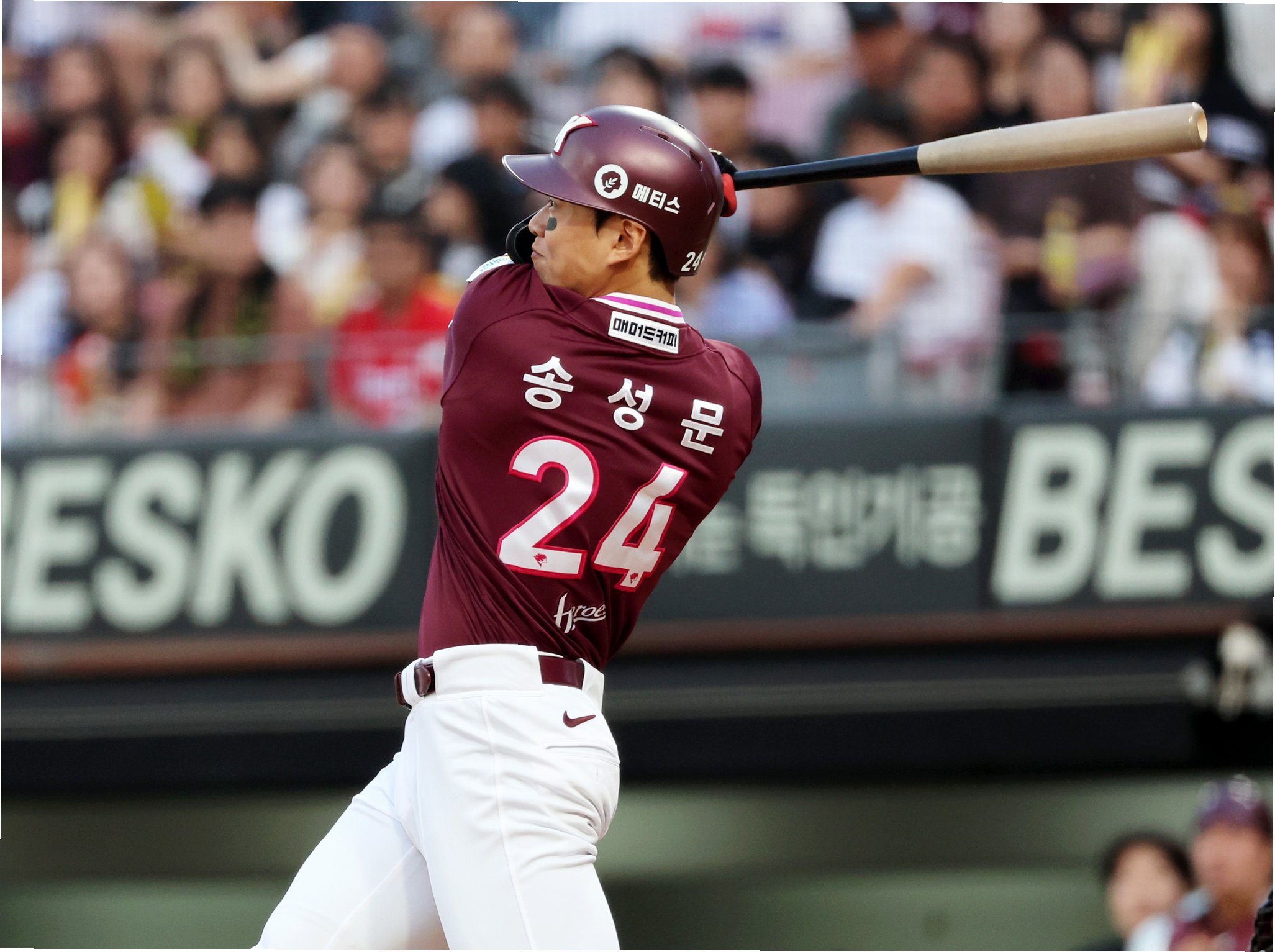 송성문 선수는 2015년 히어로즈에 입단한 후, 꾸준한 성장세를 보이며 리그 정상급 선수로 발돋움했습니다. 특히 최근 2년 동안 놀라운 경기력을 선보이며 메이저리거의 꿈을 이뤘습니다. 2024년에는 타율 0.340, 19홈런, 104타점을 기록했고, 올해는 타율 0.315, 26홈런, 90타점을 기록하며 리그 대표 3루수로 자리매김했습니다. 2024년에는 KBO 3루수 수비상을 수상하며 공수 양면에서 뛰어난 기량을 인정받았습니다.