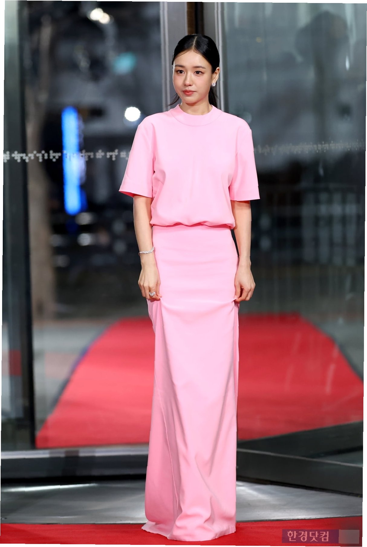 많은 여배우들이 화려한 드레스로 경쟁하는 레드카펫에서, 안은진은 핑크 컬러의 롱드레스를 선택하며 차별화를 시도했습니다. 과도한 액세서리 없이도 그녀의 화사한 미모는 더욱 빛을 발했습니다. 일각에서는 ‘티셔츠 같다’, ‘일상복 느낌’이라는 평도 있었지만, 168cm의 키와 우월한 비율은 안은진을 레드카펫의 주인공으로 만들기에 충분했습니다.