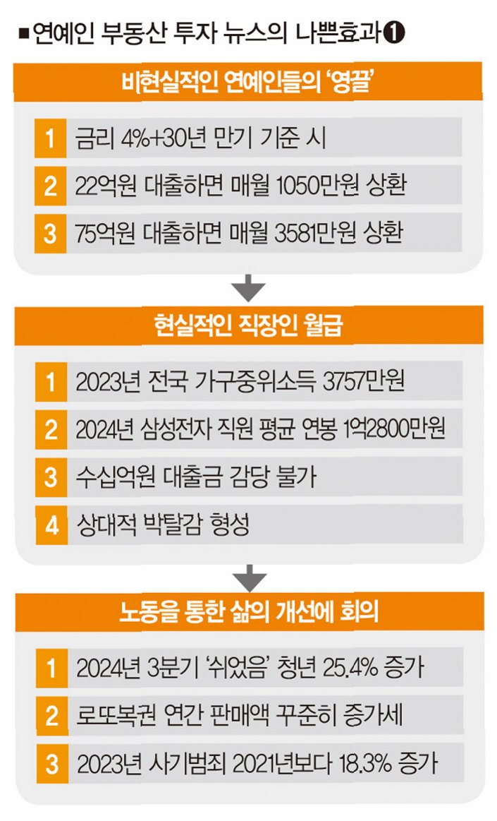 연예인의 수익 규모 자체를 문제 삼기는 어렵다. 하지만 그들의 발언과 태도는 반복적으로 입방아에 오르며 반감을 불러일으키고 있다.