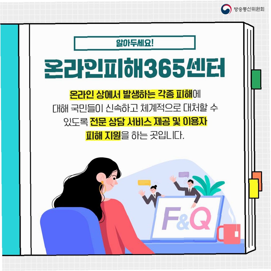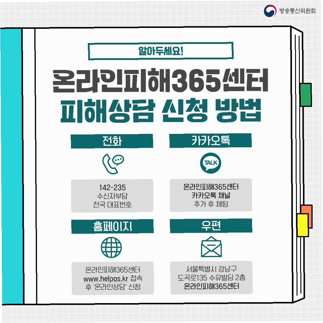 * 긴급한 피해 상황 발생 시: 365센터에 즉시 도움을 요청하세요. (예: 악성 댓글, 개인 정보 유출 등)