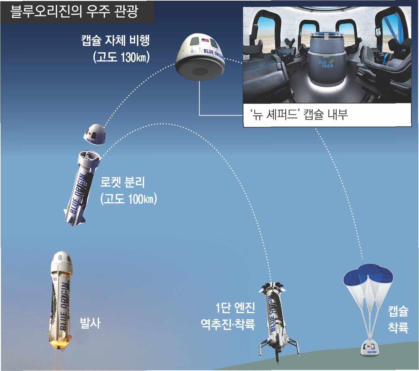 1.  뉴 셰퍼드: 재사용 가능한 뉴 셰퍼드 로켓은 우주 관광 시장을 개척하고 있습니다.