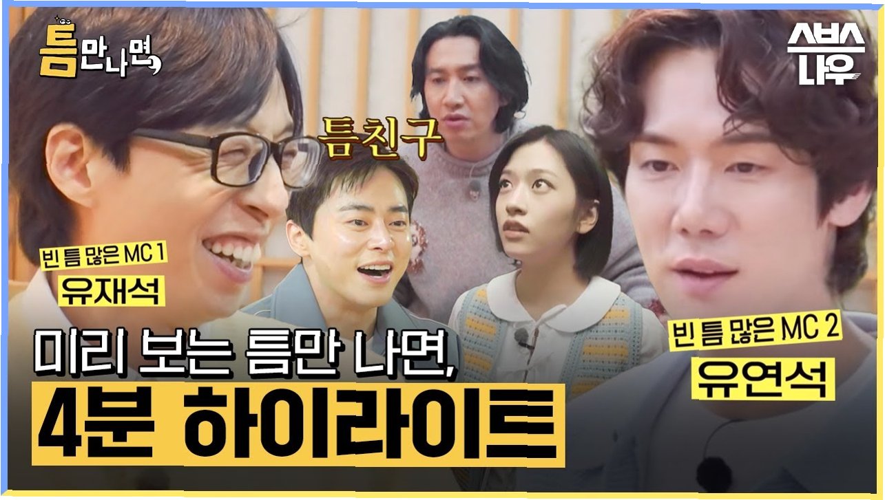 A.'틈만 나면,'은 일상 속 마주하는 잠깐의 틈새 시간 사이에 행운을 선물하는 '틈새 공략' 버라이어티 프로그램입니다.
