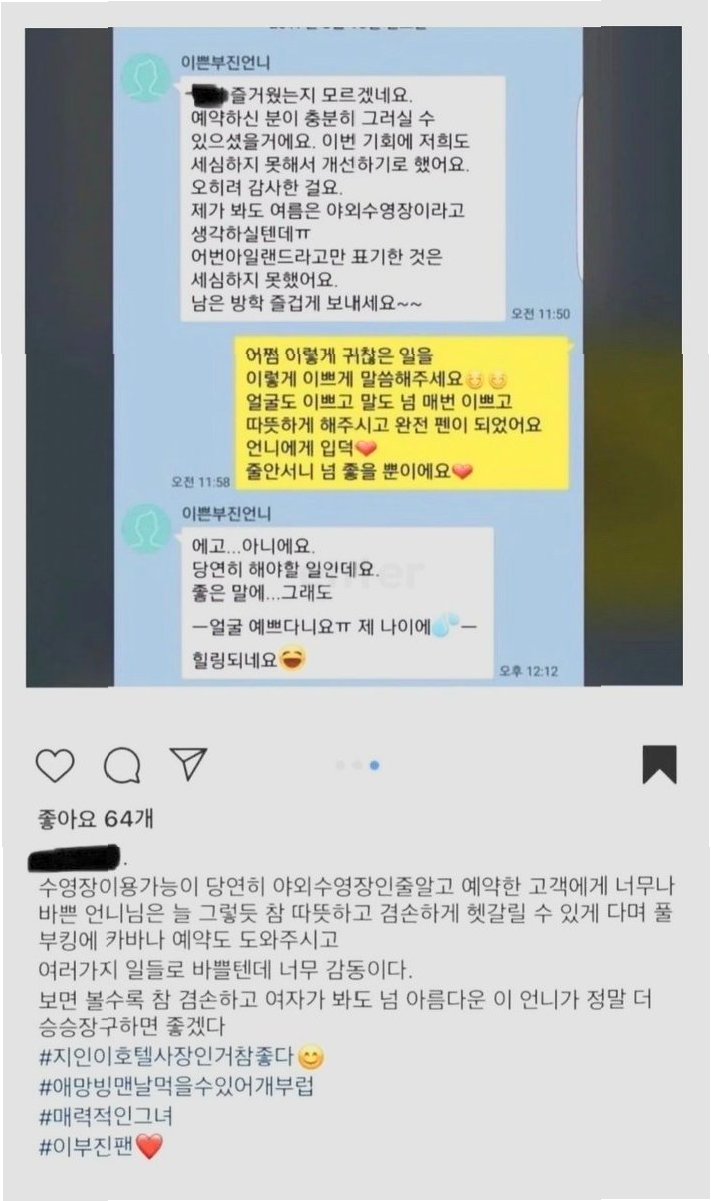공개된 대화에서 학부모는 호텔 패키지 예약 시 수영장 이용 가능 여부를 문의했습니다. 이 사장은 일정과 예약 현황을 상세히 설명하며, '어번아일랜드라고만 표기한 것은 세심하지 못했다'고 인정하고 개선을 약속했습니다. 이에 학부모는 '얼굴도 너무 예쁘고, 완전 팬이 됐다. 언니에게 입덕했다'고 감탄했습니다. 이 사장은 '얼굴 예쁘다니요. 제 나이에, 힐링 되네요. 당연히 해야 할 일인데요'라며 겸손하게 답했습니다. 이러한 이 사장의 따뜻하고 진솔한 소통 방식은 학부모에게 깊은 감동을 주었습니다.