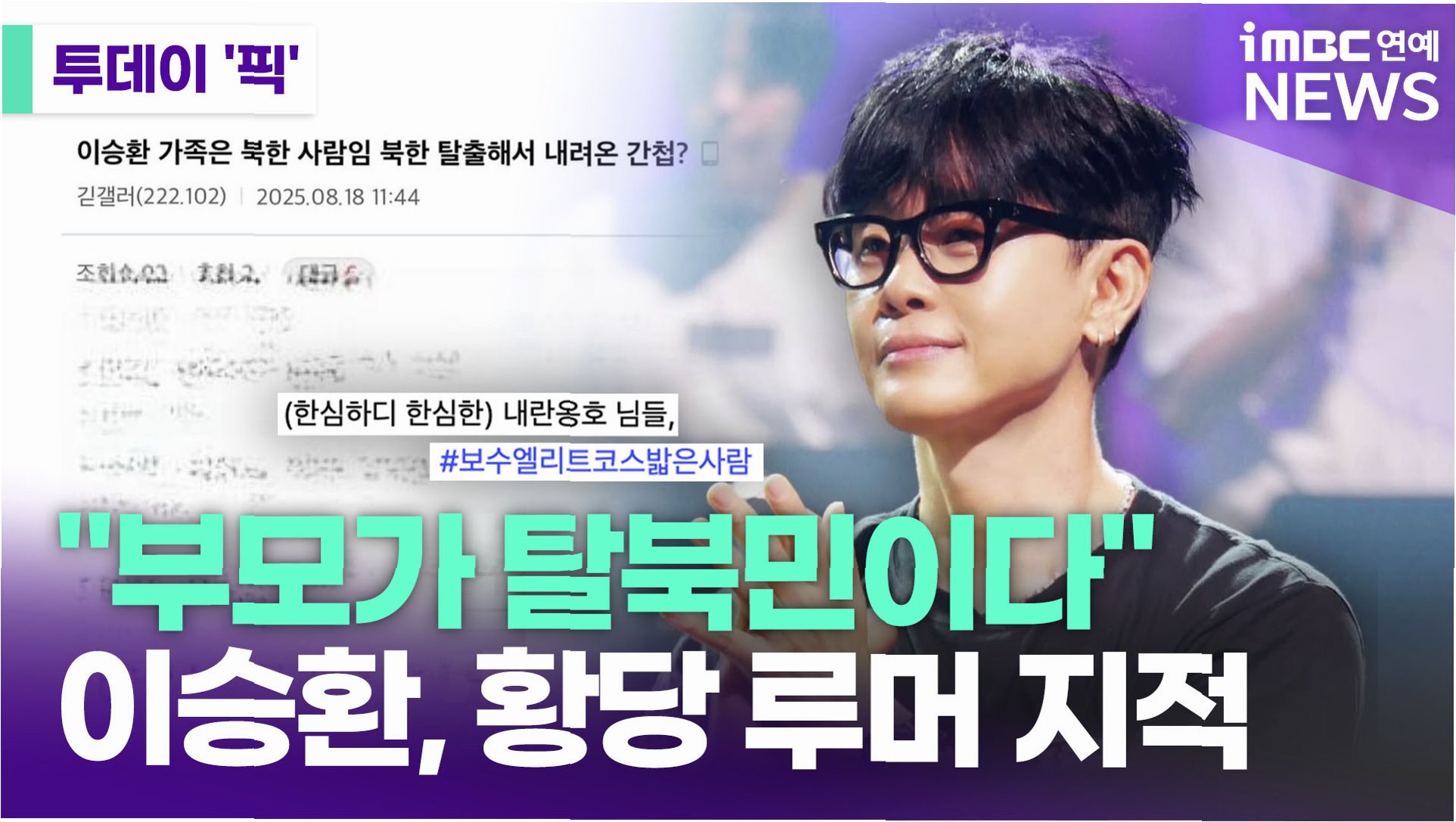 가수 이승환이 어이없는 루머에 직접 입을 열었습니다. 18일, 이승환은 자신의 인스타그램을 통해 극우 온라인 커뮤니티에 올라온 자신과 관련된 황당한 글들을 공개하며, 이에 대한 입장을 밝혔습니다. 해당 게시물들은 이승환과 그의 가족을 북한 출신으로 묘사하며 근거 없는 비방을 담고 있었습니다. 이승환은 이러한 루머에 대해 유쾌하면서도 단호한 반박을 내놓으며 팬들의 지지를 얻었습니다. 이는 온라인상에서 퍼지는 허위 정보에 대한 경각심을 일깨우는 동시에, 아티스트를 향한 무분별한 비난에 대한 경고의 메시지를 담고 있습니다.