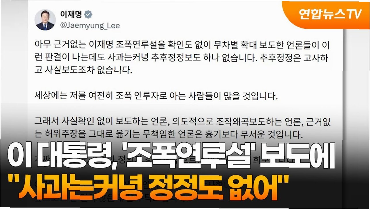 이재명 대통령은 자신에 대한 '조폭 연루설'을 제기했던 장영하 변호사가 징역형 집행유예를 확정받은 것에 대해 "사과는 커녕 추후 정정 보도 하나 없다"며 "허위 주장을 그대로 옮기는 무책임한 언론은 흉기보다 무섭다"고 강하게 비판했습니다. 대법원은 공직선거법상 허위사실 공표 혐의로 기소된 장 변호사에게 징역 1년에 집행유예 2년을 선고한 원심을 확정했습니다. 이 대통령은 여전히 자신을 조폭 연루자로 아는 사람들이 많을 것이라며, 사실 확인 없이 보도하거나 의도적으로 왜곡 보도하는 언론의 행태를 지적했습니다.