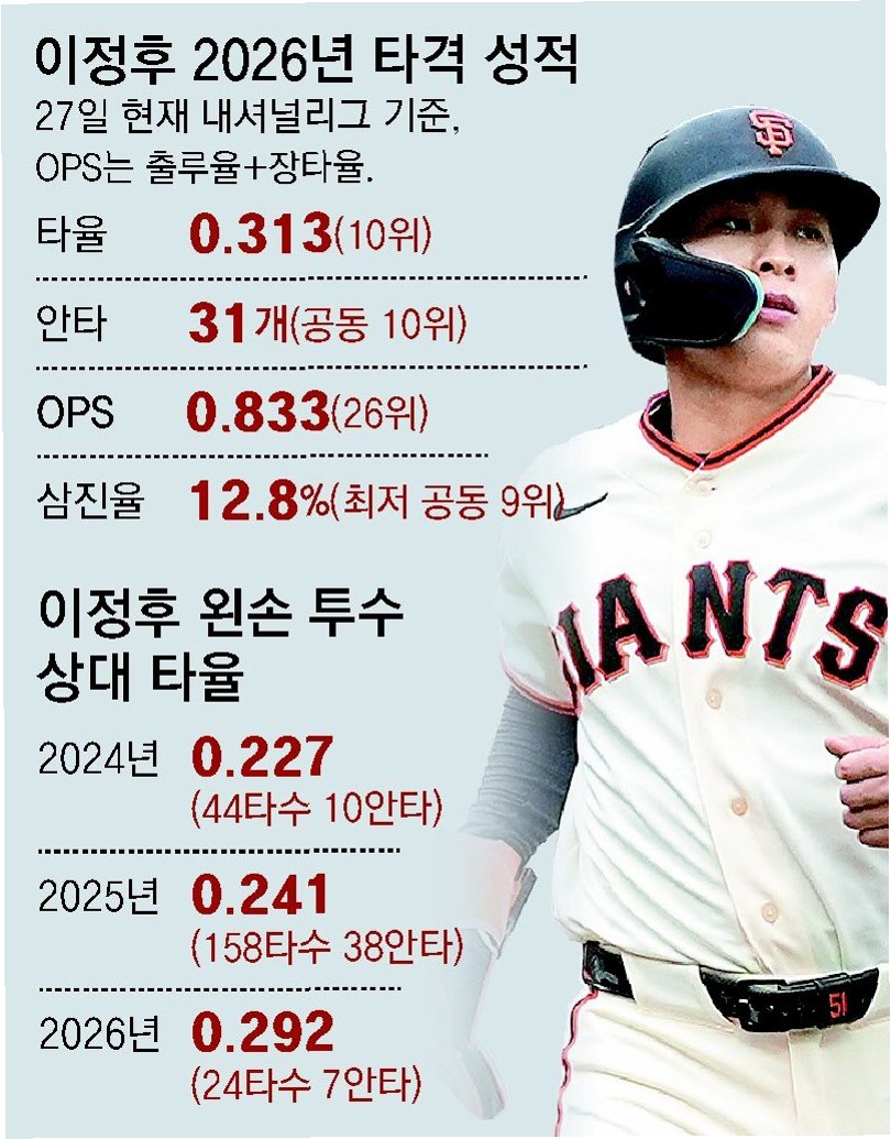지난 4월, 샌프란시스코 팬들은 이정후의 주전 기용에 대해 의문을 제기했습니다. 북미 스포츠 매체 '디 애슬레틱'의 앤드류 배걸리 기자는 한 팬의 질문을 인용하며, '계약 규모나 한국 시장이라는 요소만으로 그를 주전으로 계속 기용하는 게 언제까지 정당화될 수 있을까?'라며 좌완 투수 상대 성적 부진을 지적했습니다. 당시 이정후는 타율 0.207, 출루율 0.262, 장타율 0.345로 기대에 미치지 못하는 성적을 기록하며 팬들의 비판적인 시선을 받았습니다. 6년 총액 1억 1300만 달러의 가치를 증명해야 할 시점에서, 팬들의 기대와 현실의 괴리는 분명했습니다.