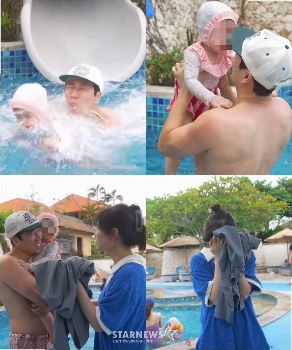A.장수원이 딸과 워터 슬라이드를 타다 물에 빠진 후, 아내의 놀란 반응과 눈물을 보이는 듯한 장면이 포착되어 '유난 육아' 논란이 일었습니다.