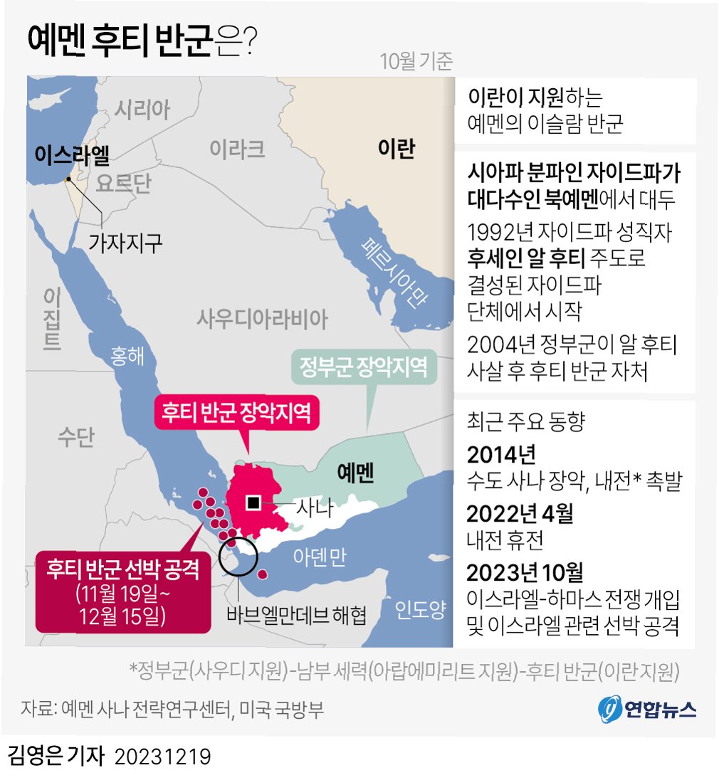 이란의 지원을 받는 예멘의 후티 반군이 처음으로 이스라엘군 시설에 탄도미사일을 발사하며 본격적인 참전을 선언했습니다. 이는 중동 전쟁의 확전 가능성을 더욱 높이는 결정적인 사건으로 평가됩니다. 후티 반군은 목표 달성 및 '저항의 축'에 대한 공격 중단 시까지 작전을 계속할 것이라고 밝혔으며, 이미 레바논 헤즈볼라와 이라크 시아파 민병대가 이란 편에 서서 참전한 상황입니다.
