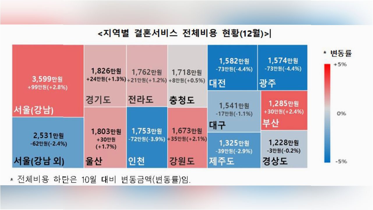 결혼 비용 양극화 심화, 강남 지역 역대 최고 기록