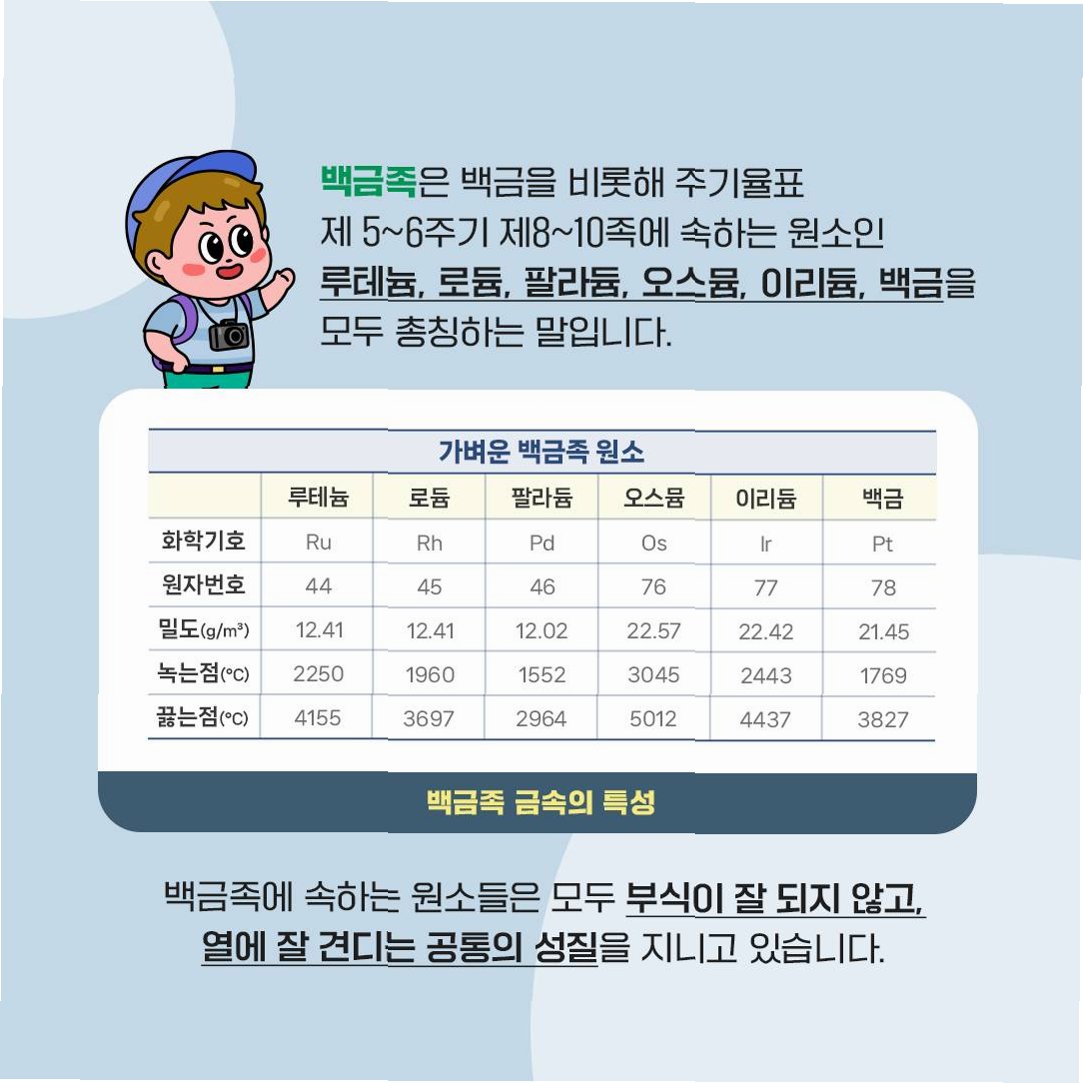 A.자동차 배기가스 정화 장치, 전자 제품, 치과용 합금 등 다양한 분야에서 사용되지만, 자동차 산업에서 가장 많이 사용됩니다.