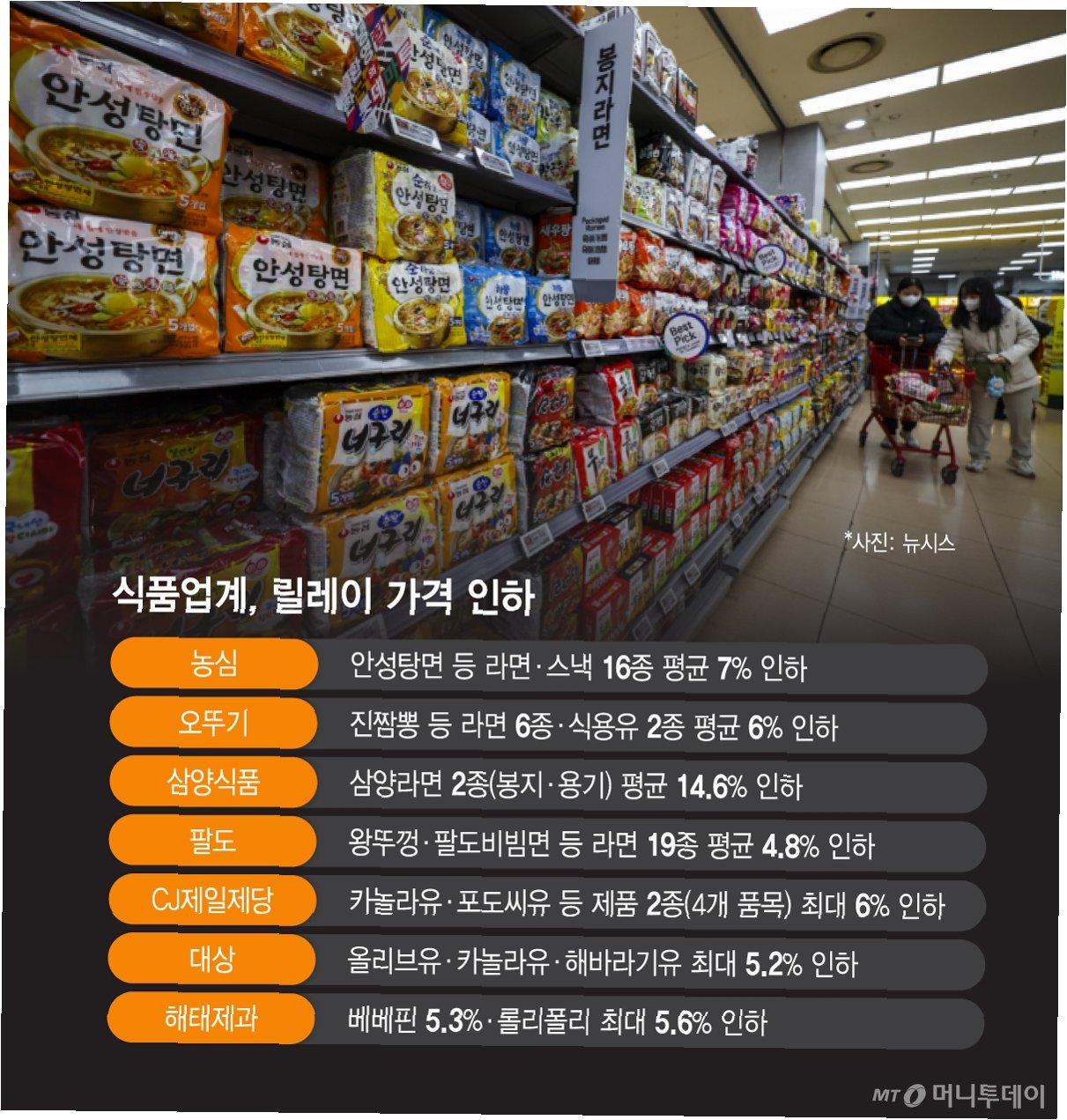 라면, 식용유 가격도 줄줄이 인하…소비자 부담 완화 기대