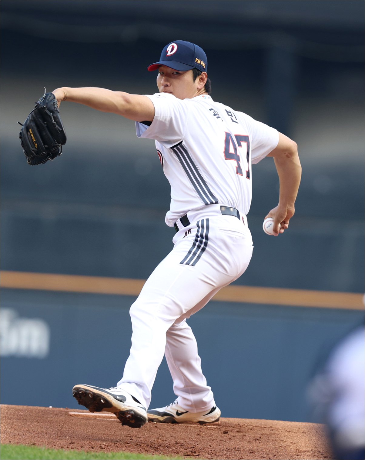 A.데인 더닝 선수가 곽빈 선수 대신 등판했습니다.