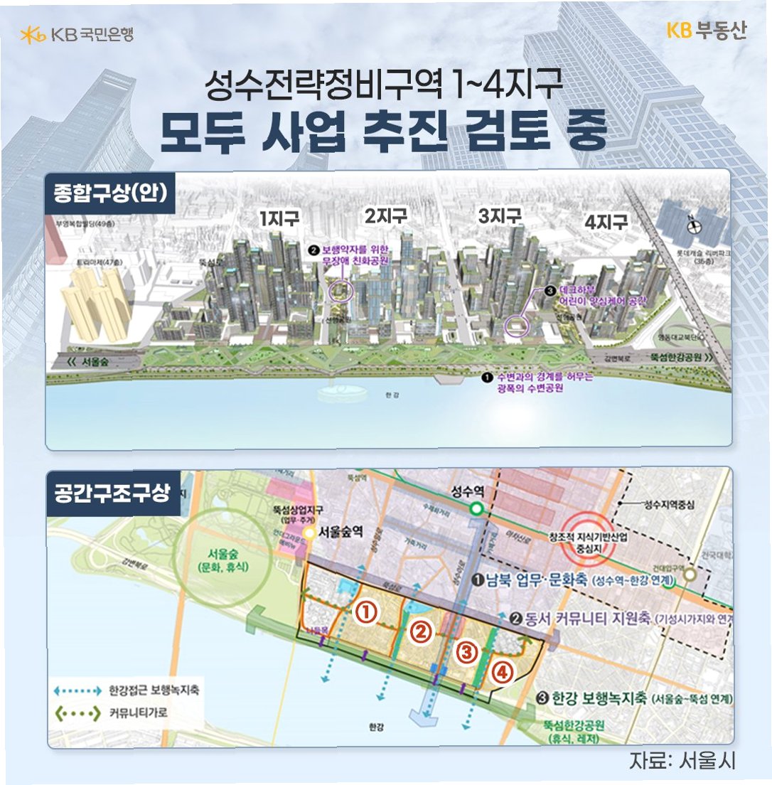 성수전략정비구역은 서울 성동구 성수동1가 일대에 위치하며, 총 4개 지구로 구성된 대규모 재개발 사업입니다. 특히, 1지구는 지하 4층~지상 69층, 17개 동, 3014가구 규모로 탈바꿈할 예정이며, 공사비만 2조 1540억원에 달합니다. 서울숲 인근, 압구정 접근성 등 우수한 입지와 높은 일반분양 비율로 사업성이 뛰어나다는 평가를 받습니다. 현대건설, GS건설, HDC현대산업개발이 관심을 보이고 있지만, 입찰 지침에 대한 우려로 인해 경쟁 입찰 성사 여부가 주목됩니다.