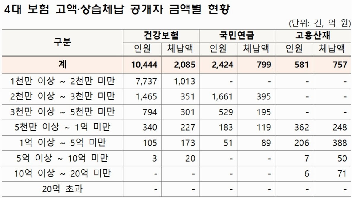 4대 보험 체납자, 그들의 이름이 공개되다