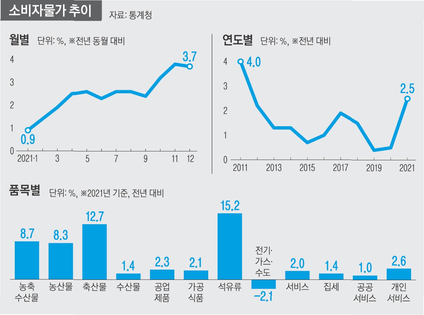 12월 소비자물가, 넉 달 연속 2%대 유지
