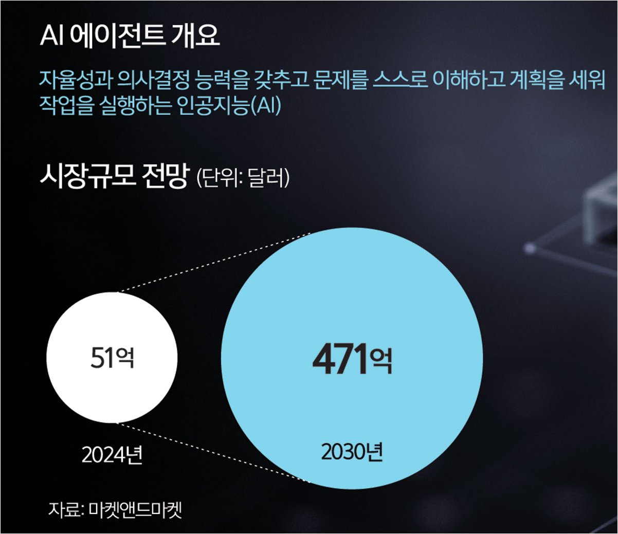 AI 에이전트는 AI의 한 단계 진화된 형태로, 자율적인 의사 결정과 행동 능력을 갖춘 존재입니다. AI 에이전트는 주어진 목표를 달성하기 위해 스스로 판단하고, 실행하며, 학습하는 능력을 갖추고 있습니다. AI 에이전트는 단순한 작업 자동화를 넘어, 복잡한 문제 해결, 데이터 분석, 고객 응대 등 다양한 분야에서 활용될 수 있습니다. AI 에이전트는 인간의 개입 없이도 스스로 문제를 해결하고, 최적의 결과를 도출할 수 있습니다. AI 에이전트는 AI 기술의 잠재력을 극대화하고, 더욱 효율적이고 혁신적인 미래를 만들어갈 핵심 기술입니다. AI 에이전트는 끊임없이 진화하며, 우리의 삶을 더욱 편리하고 풍요롭게 만들어 줄 것입니다.