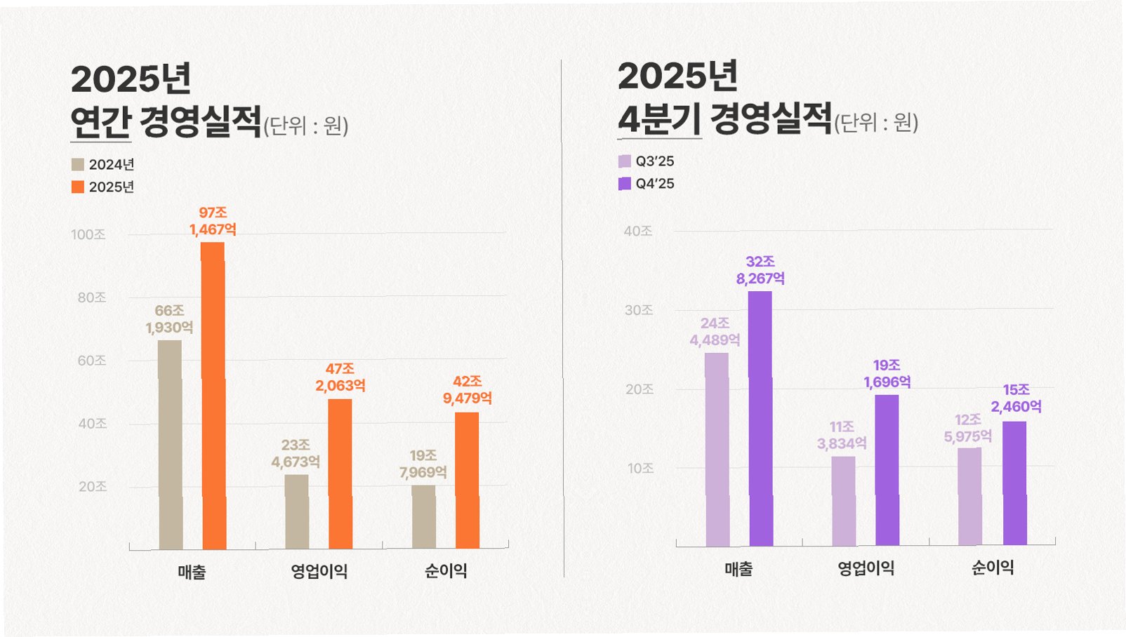 A.AI 인프라 투자 확대와 HBM, 고용량 서버용 D램 모듈 등 고부가가치 제품 판매 확대로 인해 높은 수익성을 기록했습니다. 또한, 경쟁사 대비 압도적인 기술력과 시장 지배력이 이를 뒷받침했습니다.