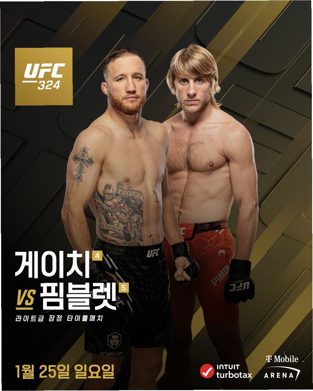 UFC는 오는 25일(한국시간) 미국 네바다주 라스베이거스 티모바일 아레나에서 2026년 첫 생중계 대회인 'UFC 324: 게이치 vs 핌블렛'을 개최합니다. 이번 대회는 밴텀급 타이틀전을 비롯하여, 라이트급 잠정 타이틀전까지 격투 팬들의 기대를 한 몸에 받고 있습니다. 특히, 여성 밴텀급 타이틀전은 이번 대회의 핵심 하이라이트 중 하나로, 전 세계 격투 팬들의 시선을 사로잡을 것입니다.
