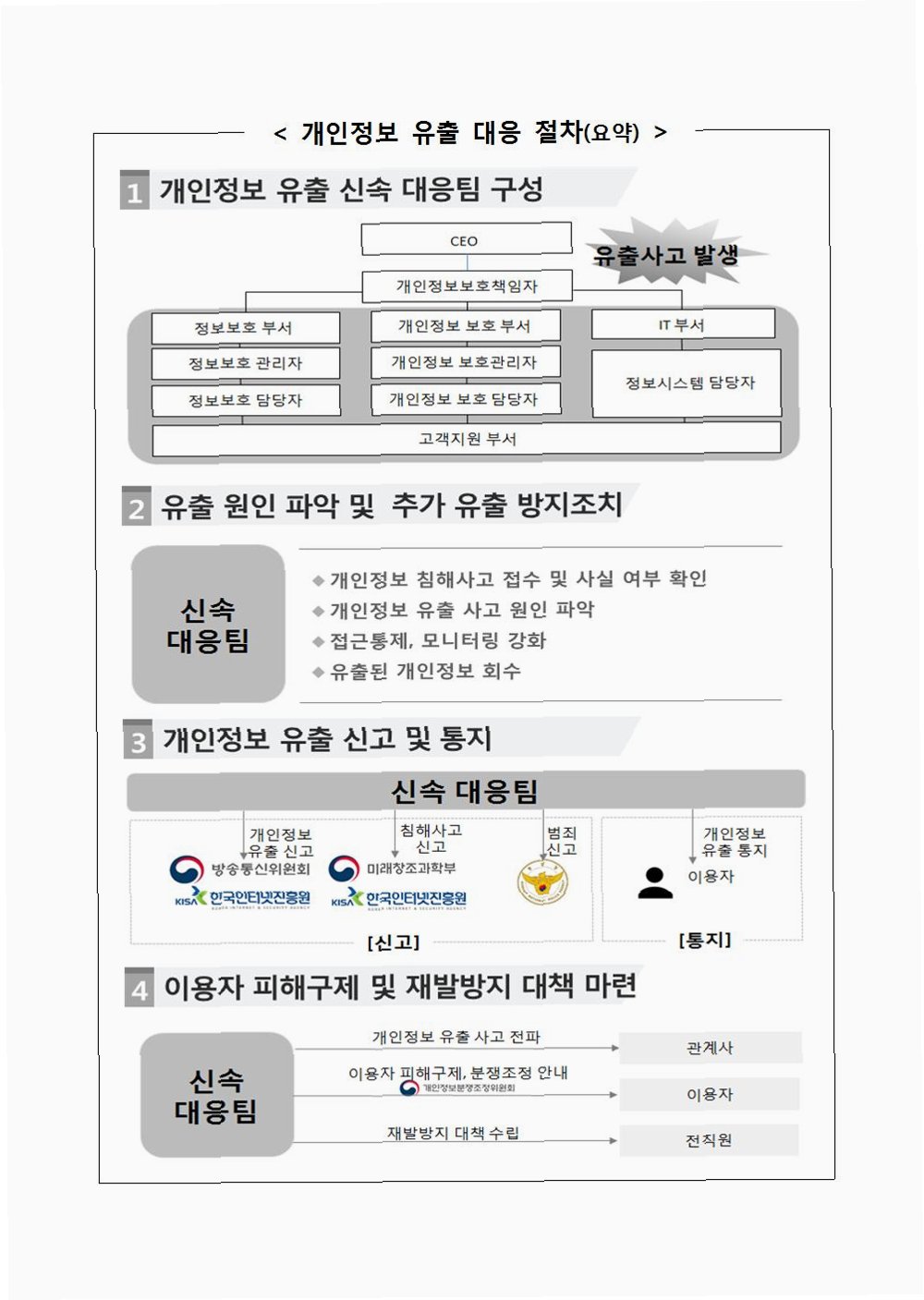 개인정보 유출 사실을 인지했다면, 다음 절차에 따라 신속하게 신고해야 합니다.