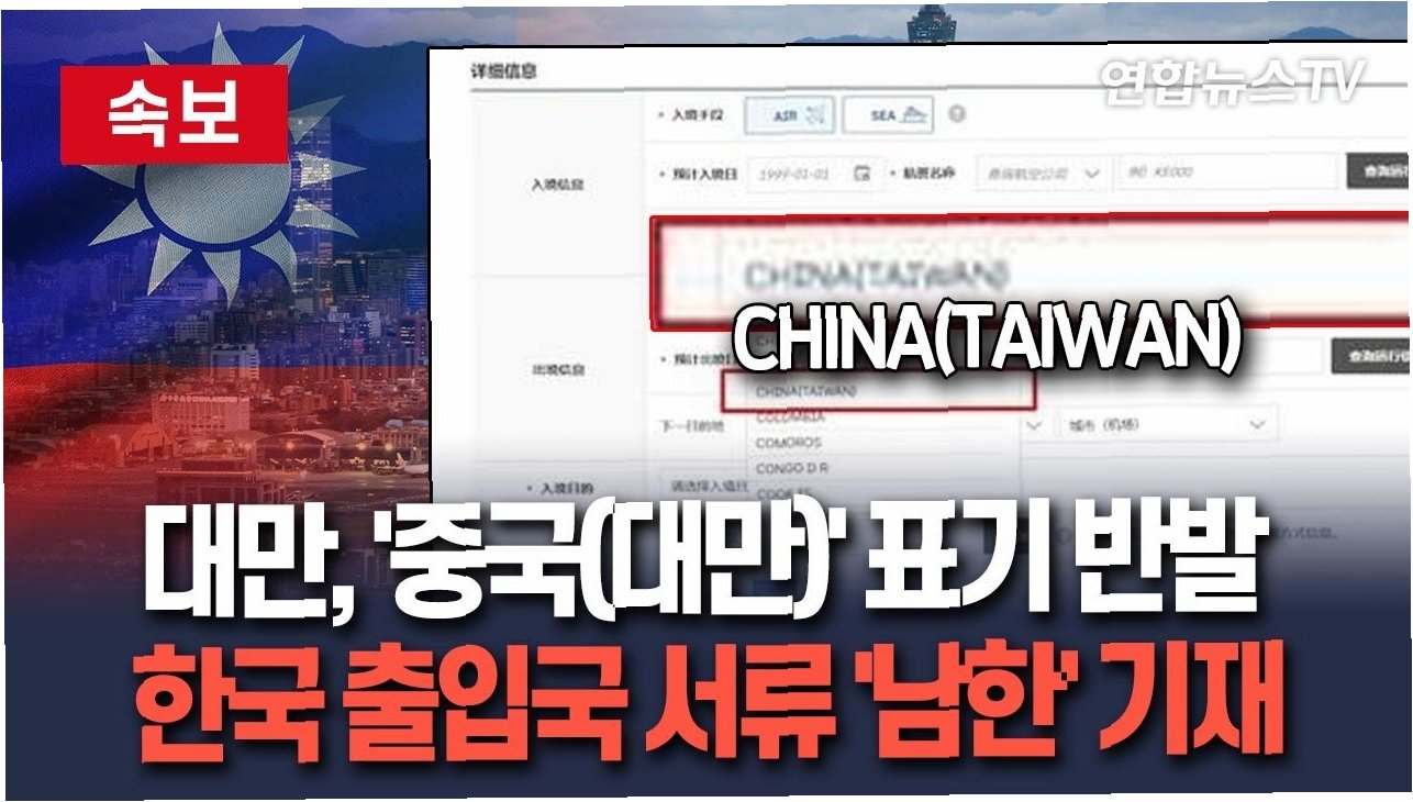 A.한국 전자입국신고서에 대만이 '중국(대만)'으로 표기된 것에 대한 반발로, 양자 대등 및 상호주의 원칙에 따라 공식 서류에서 '한국'을 '남한'으로 변경하기로 결정했습니다.
