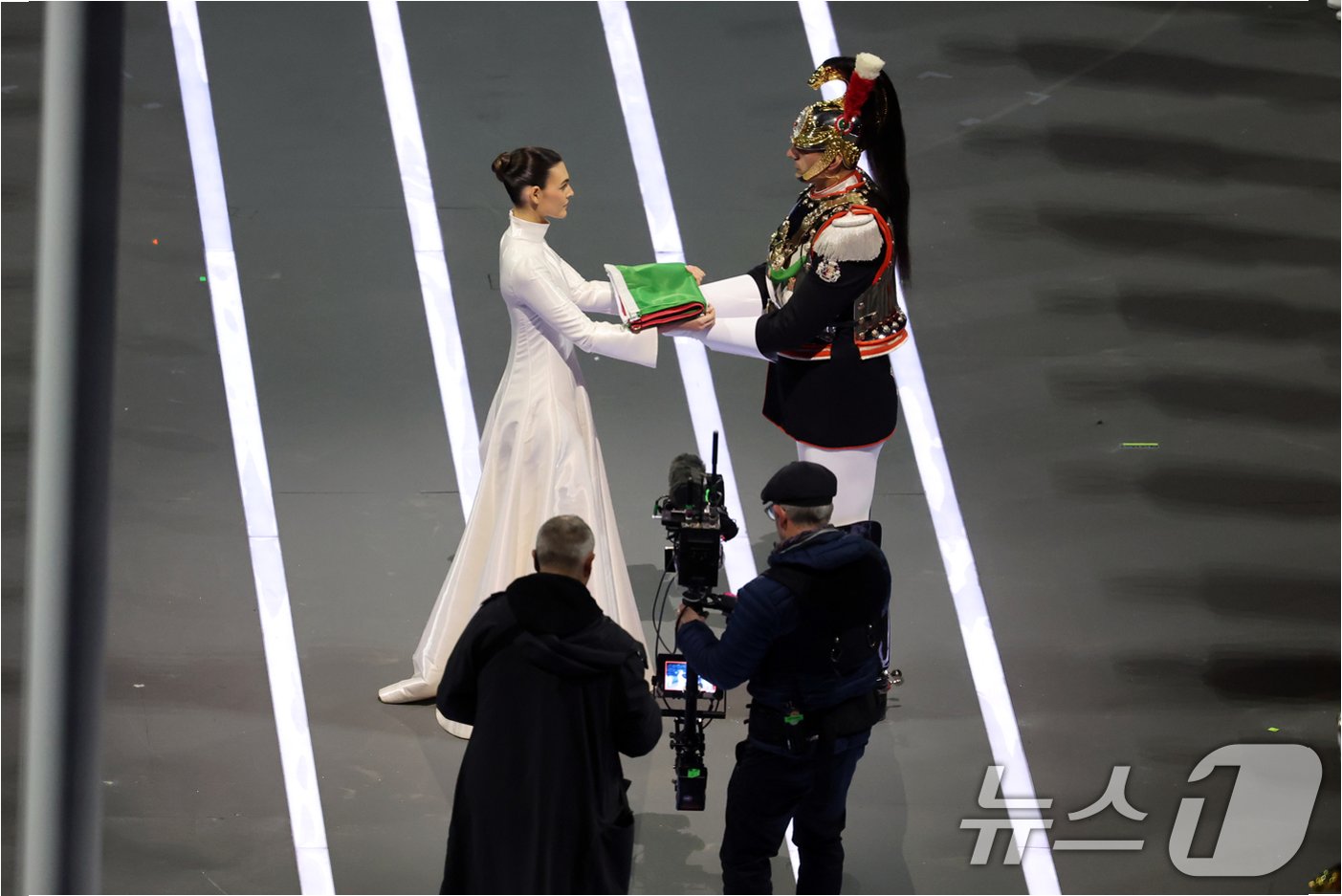 2026 밀라노·코르티나 동계올림픽의 화려한 개막식이 이탈리아 밀라노 산 시로 스타디움에서 성대하게 막을 올렸습니다. 개최국 이탈리아를 상징하는 국기가 경기장 안으로 들어오는 퍼포먼스는 단연 압권이었습니다. 초록, 하양, 빨강의 수트를 입은 모델들이 런웨이를 걷듯 등장했으며, 마지막에는 흰색 드레스를 입은 모델이 이탈리아 국기를 들고 입장했습니다. 이 주인공은 바로 세계적인 모델 비토리아 체레티였습니다.
