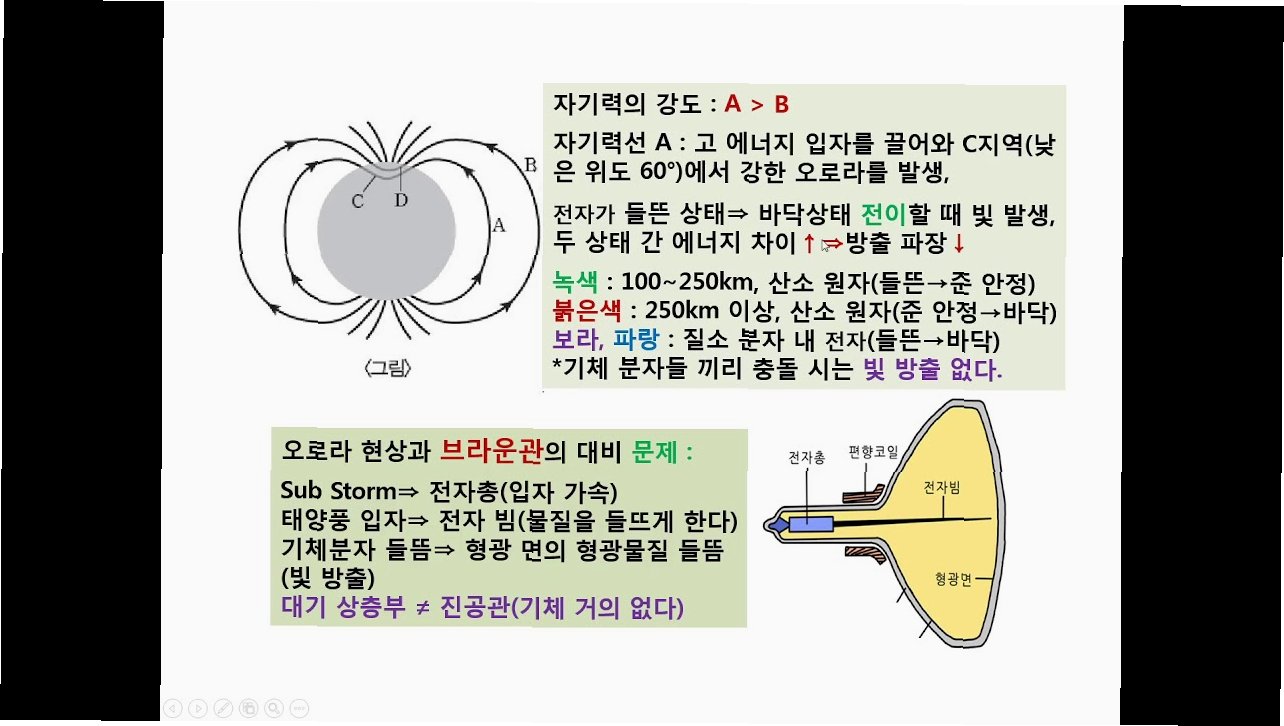 오로라 발생 과정은 다음과 같이 요약할 수 있습니다: