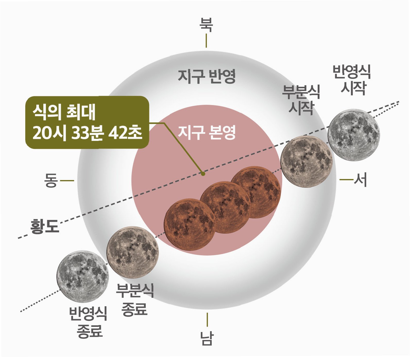 A.달이 지구의 그림자 중 가장 어두운 부분인 '본그림자'에 완전히 들어가 태양 빛이 차단되는 현상입니다. 이때 달은 지구 대기를 통과한 빛 때문에 붉게 보입니다.