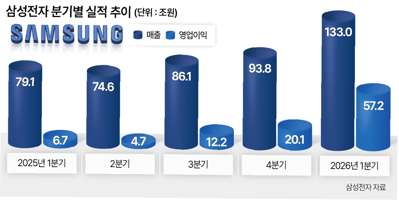 삼성전자, 1분기 영업이익 57.2조원 돌파! 역대급 실적 경신