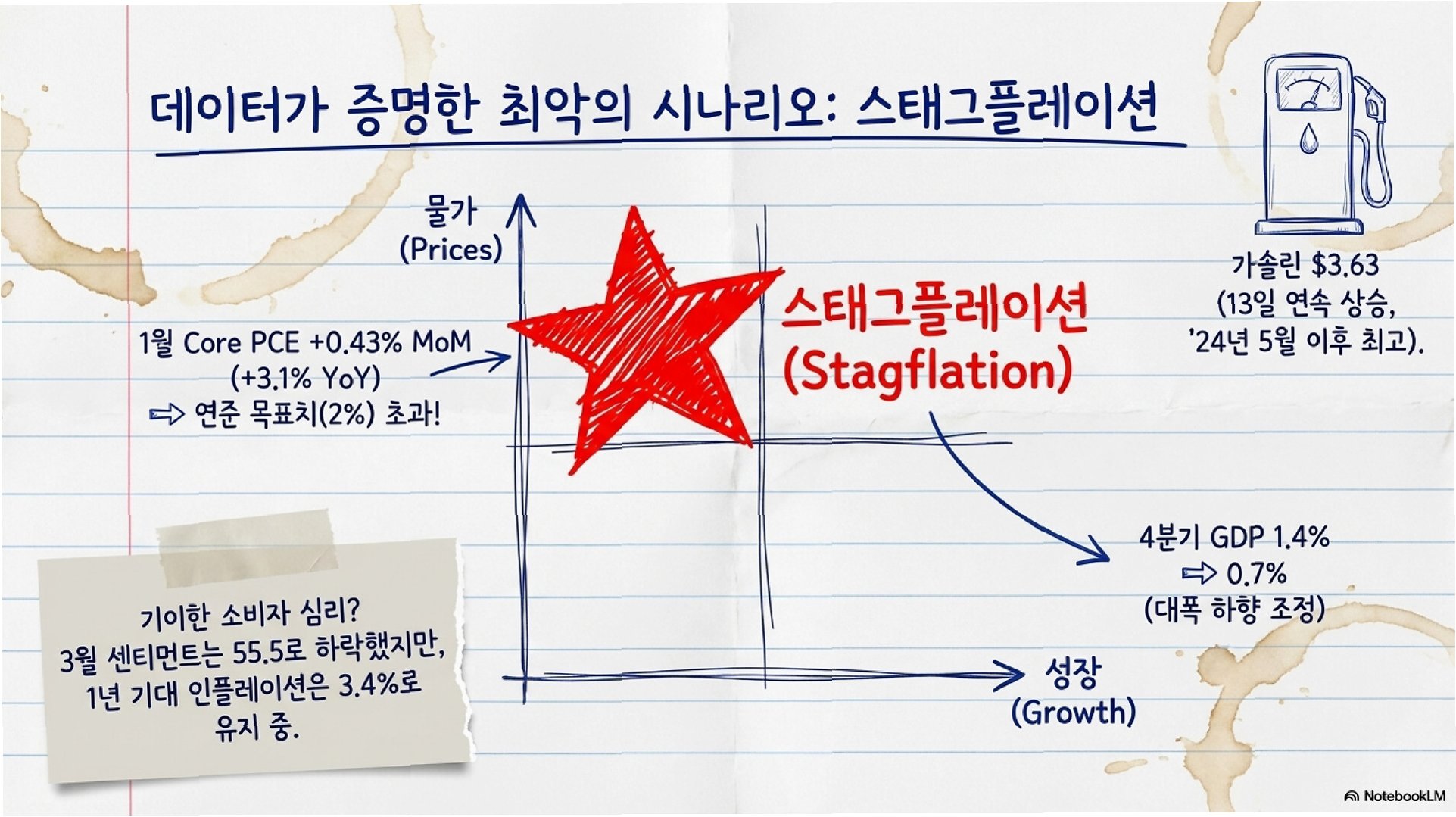 A.스태그플레이션은 기업 실적 악화와 소비 위축을 야기하여 주식 시장 전반에 하락 압력으로 작용할 수 있습니다. 또한, 금리 인하 기대 후퇴는 밸류에이션 부담을 가중시킵니다.