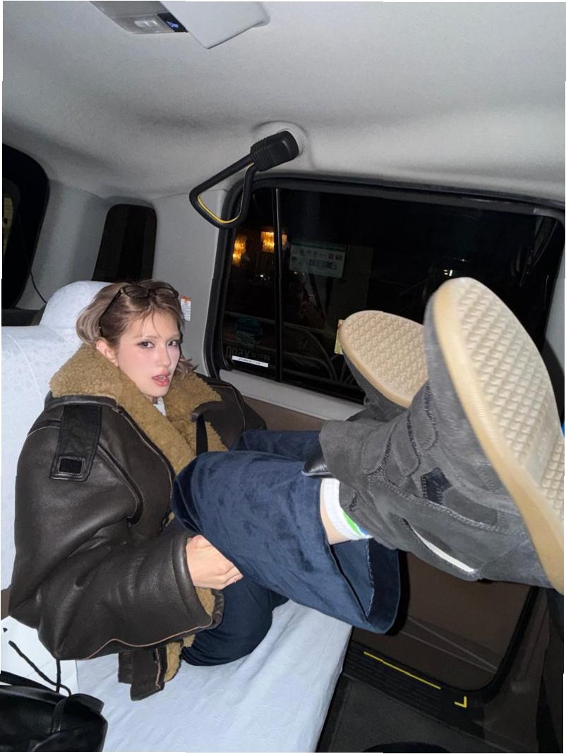 A.전소미는 일본 택시 안에서 신발을 신은 채 좌석에 다리를 올리고 기대앉은 포즈의 사진을 SNS에 게재했습니다.