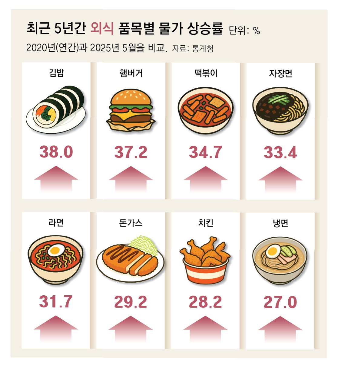 김밥, 칼국수, 김치찌개… 서민 음식도 예외 없어
