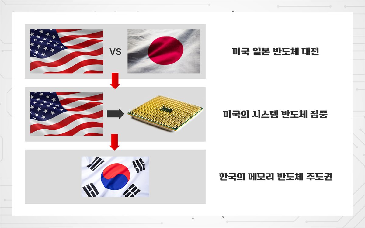 A.메모리 반도체 분야에서의 압도적인 기술 경쟁력과, 정부와 기업 간의 긴밀한 협력을 통한 지속적인 투자가 한국 반도체 산업의 가장 큰 강점입니다.