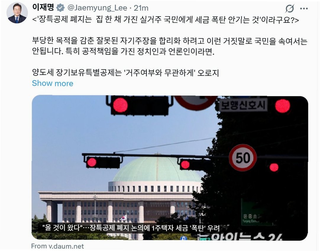 1주택자 세금폭탄? 이대통령, '거짓 선동' 일침…부동산 투기 근절 의지 재확인