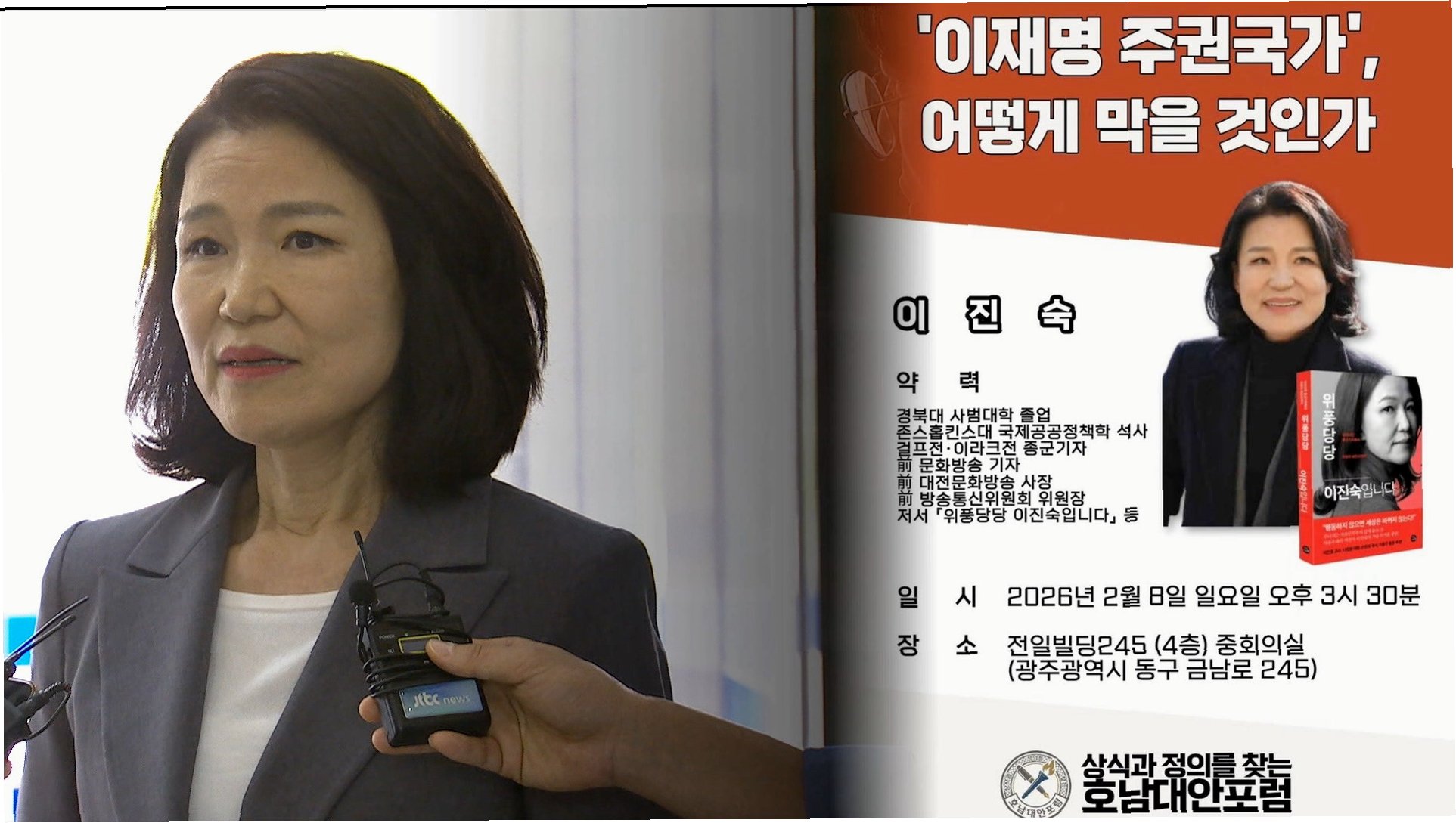 당초 호남대안포럼은 이 전 위원장을 초청해 '이재명 주권국가, 어떻게 막을 것인가'라는 주제로 강연회를 개최할 예정이었습니다. 그러나 5·18의 심장부인 옛 전일빌딩에서 강연이 추진되자, 광주전남촛불행동 등 지역 시민사회는 '시민군이 계엄군과 싸웠던 장소에서 5·18을 모욕해온 극우 인사의 강연은 있을 수 없는 일'이라며 강력하게 반발했습니다.